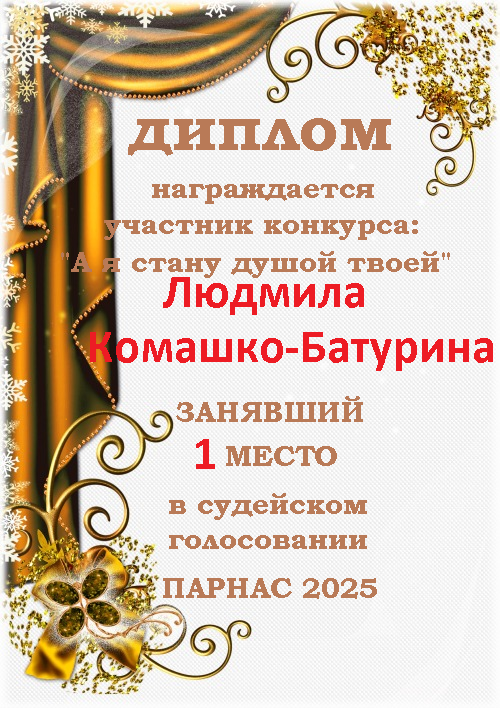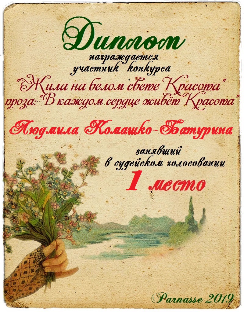Первое место в судейском голосовании по итогам конкурса "Прикосновение души"