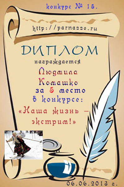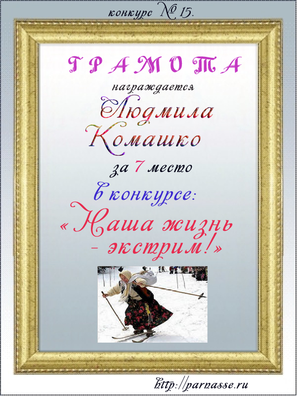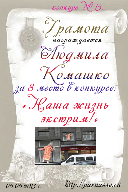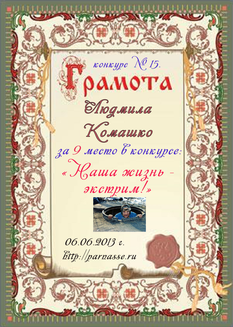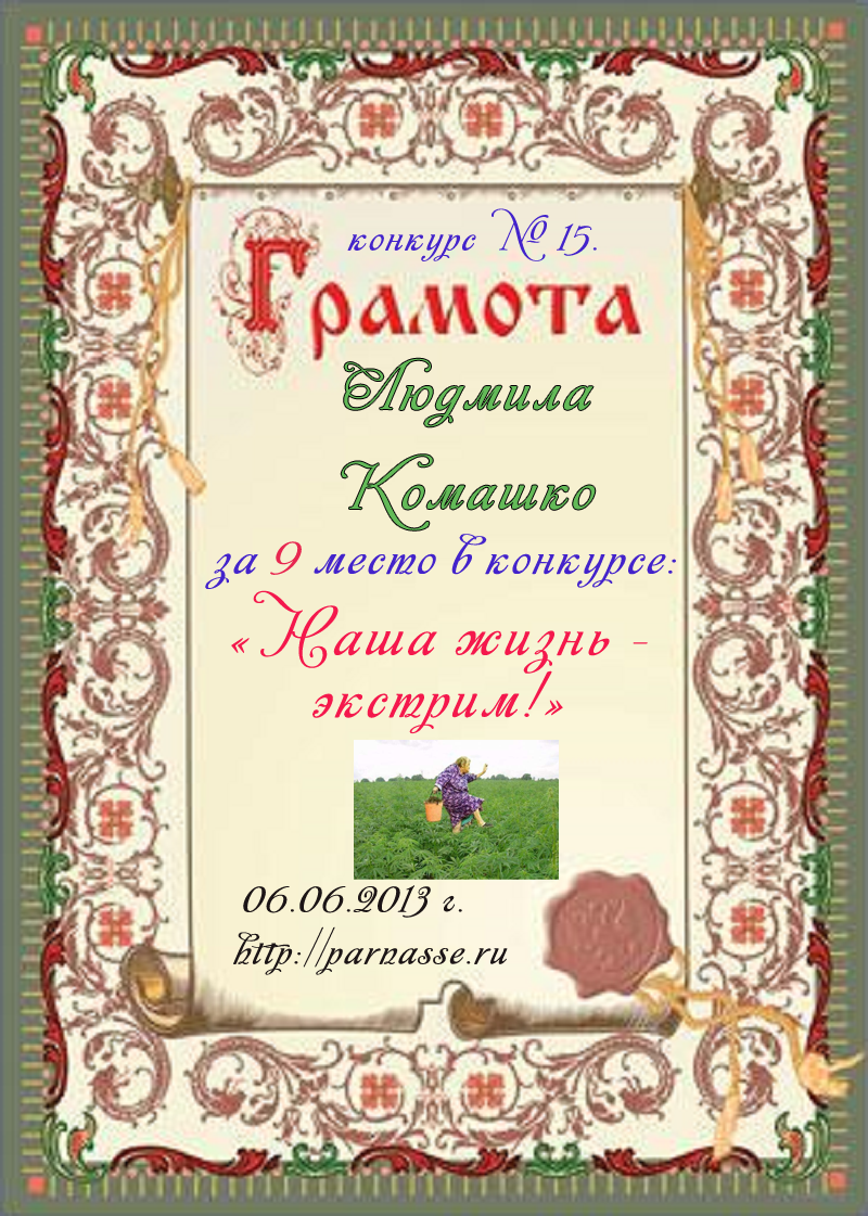 Грамота за 7 место в 15 конкурсе "Наша жизнь - экстрим"