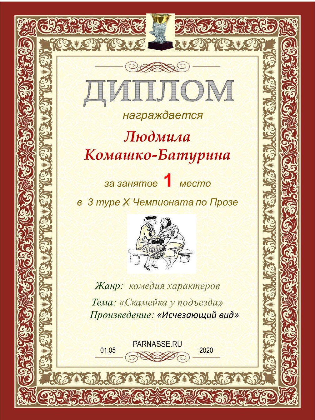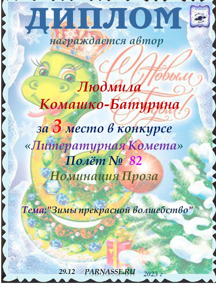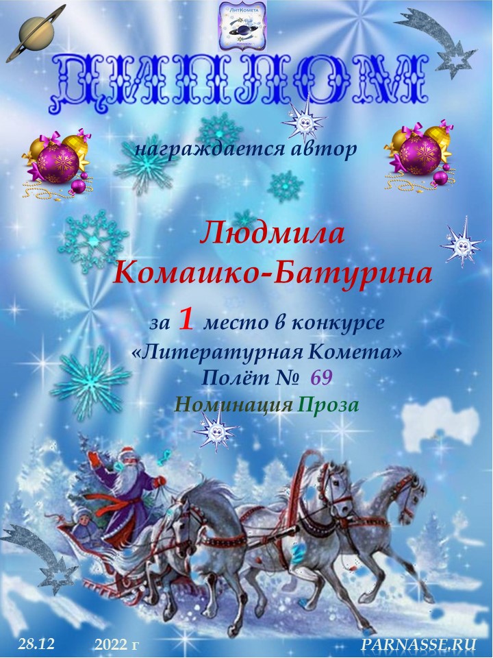 Поздравляю с 1 местом в конкурсе "ЛитКомета" Полёт № 28 - номинация Проза!