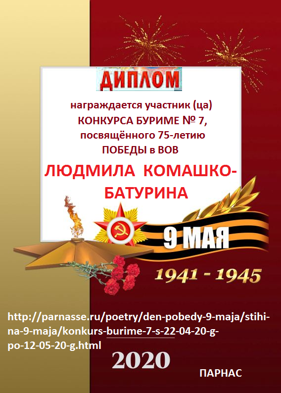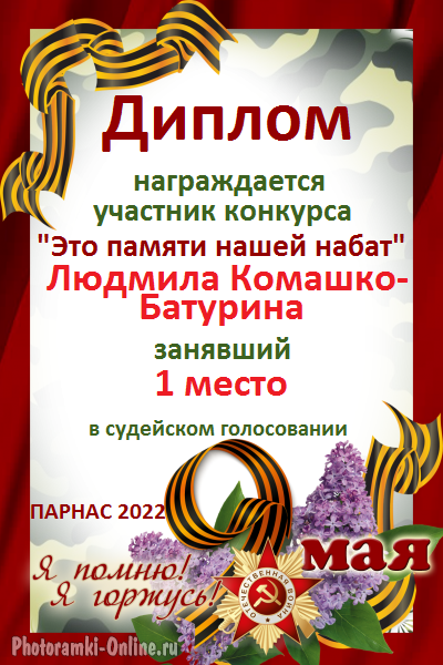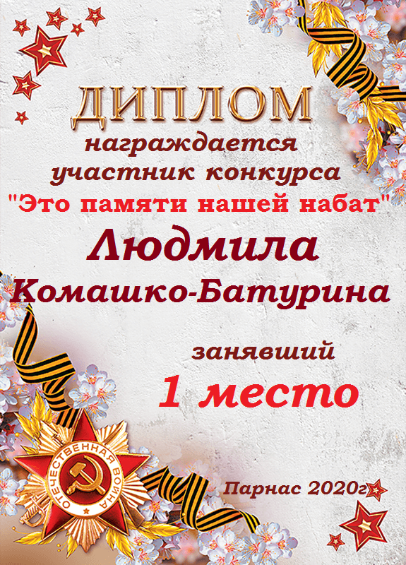 Первое место по решению Администрации и Главного судьи конкурса "Навечно в памяти"
