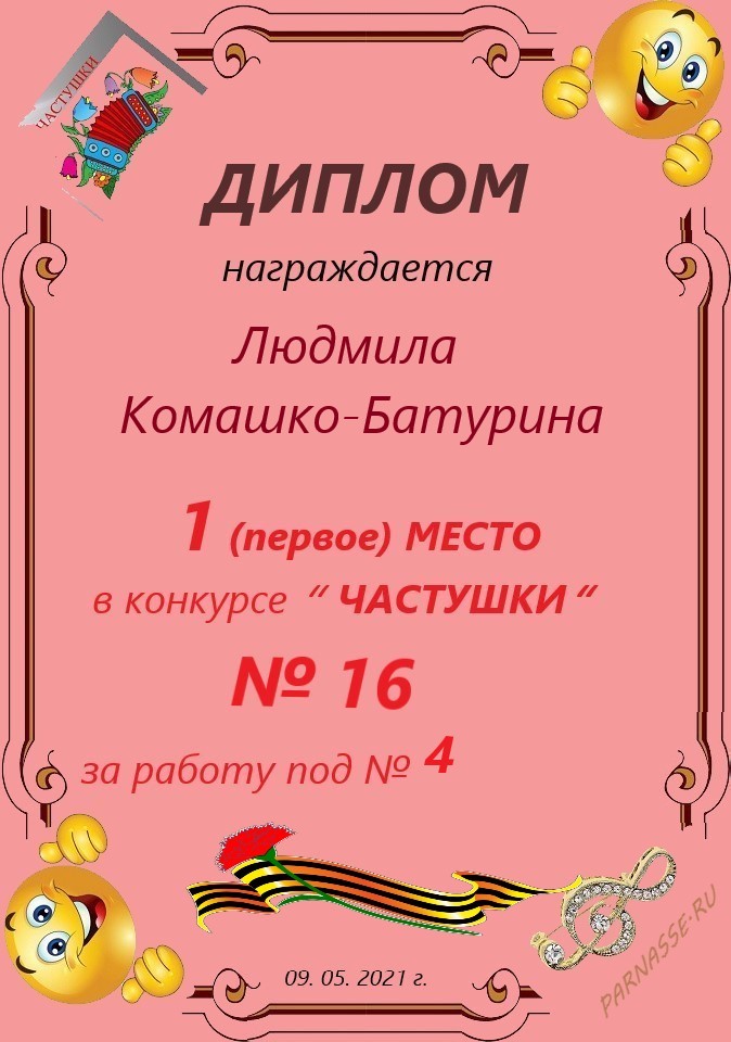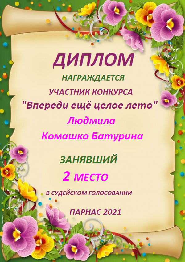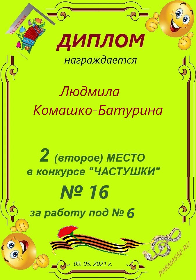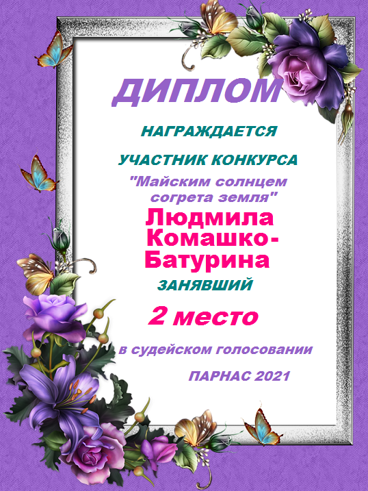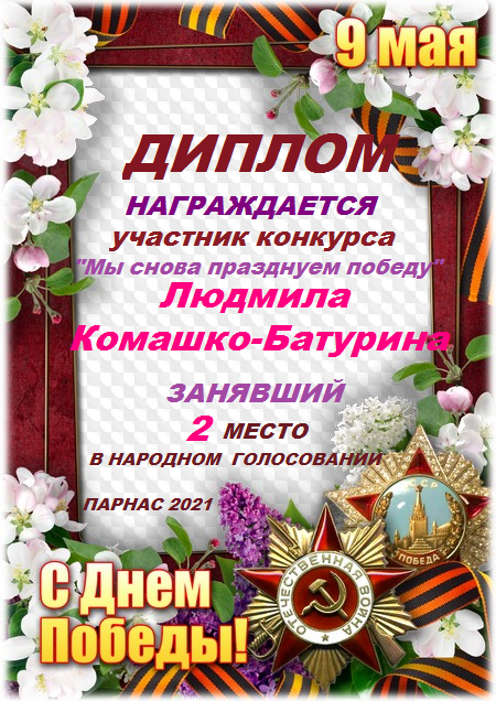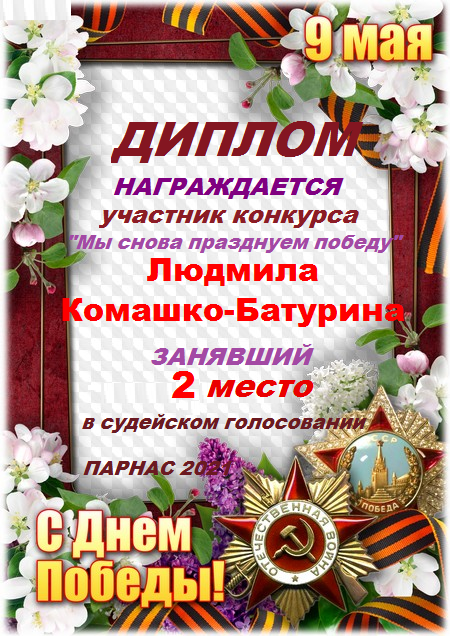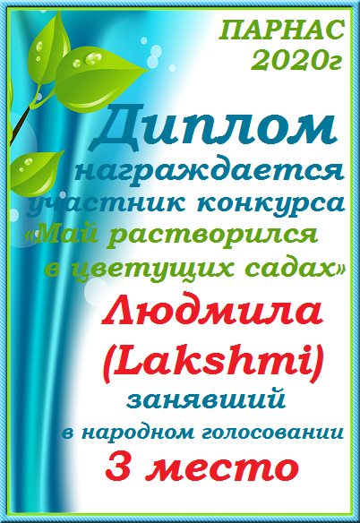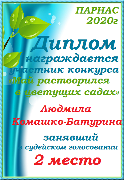 2 место место в судейском голосовании по итогам конкурса "Май хмельной стучится в окна"