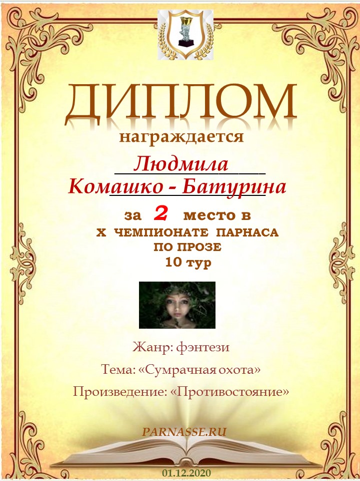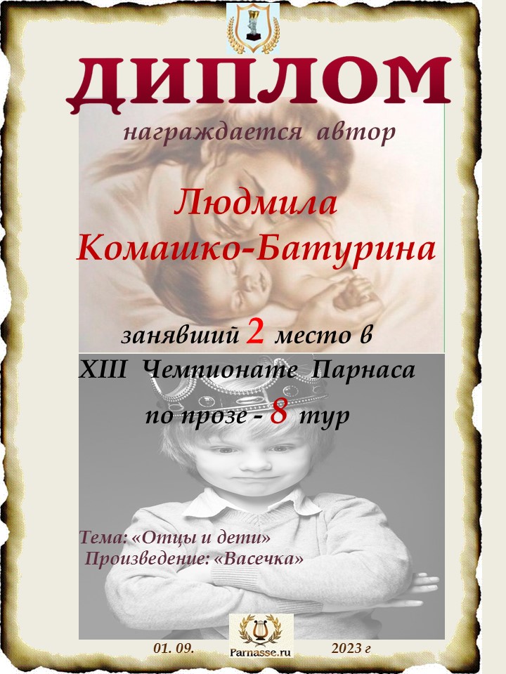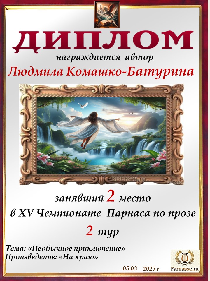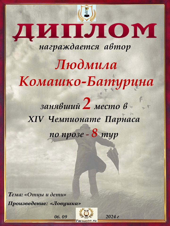 ![]() Медаль за 2 место в 7 туре XV Чемпионата Парнаса по прозе