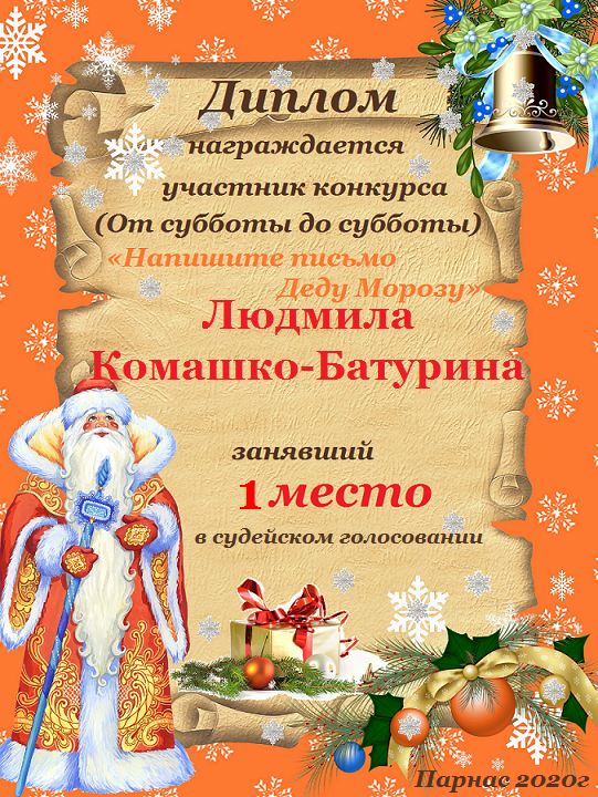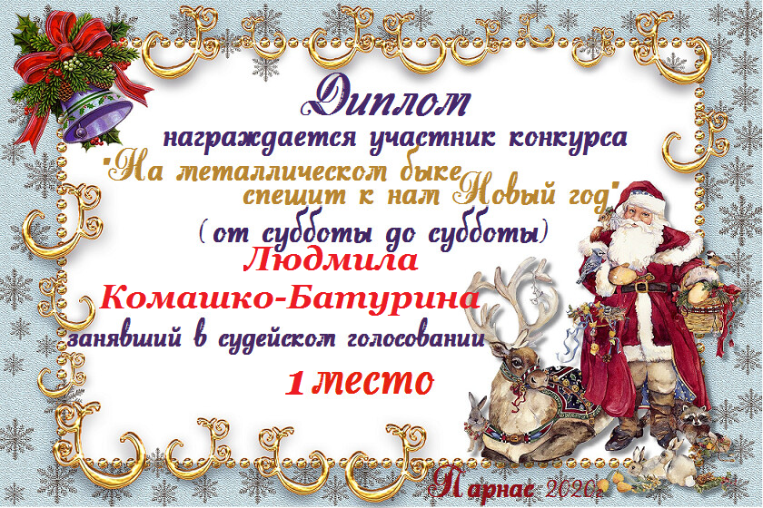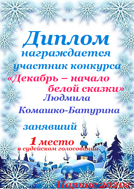 Первое место по решению Администрации и Главного судьи «Декабрь - время чудес, волшебства и новогодних сказок»