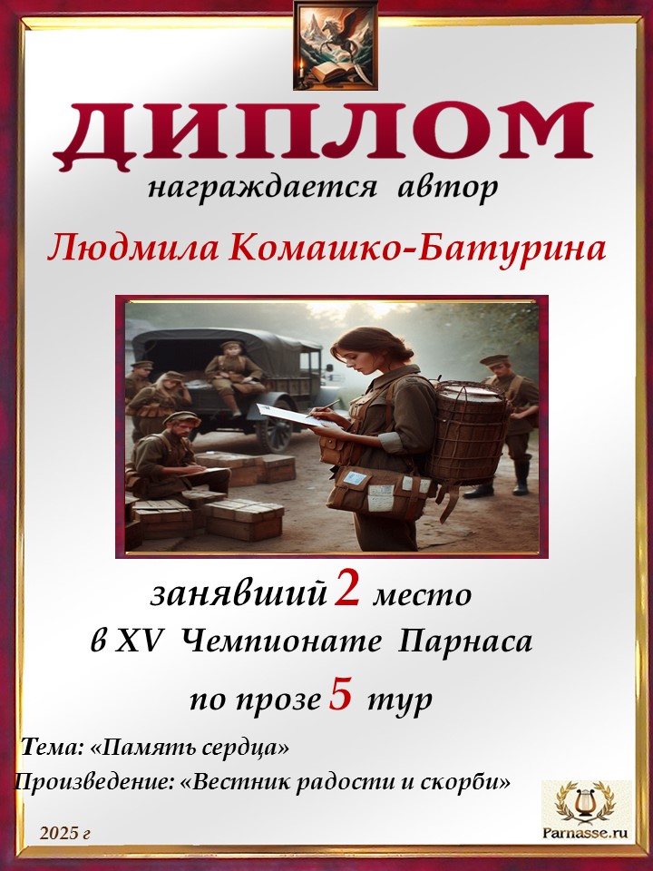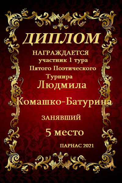 ![]() Медаль за 2 место в 5 туре XV Чемпионата Парнаса по прозе