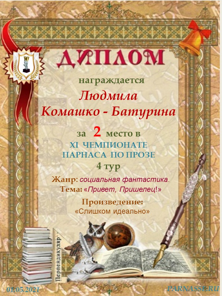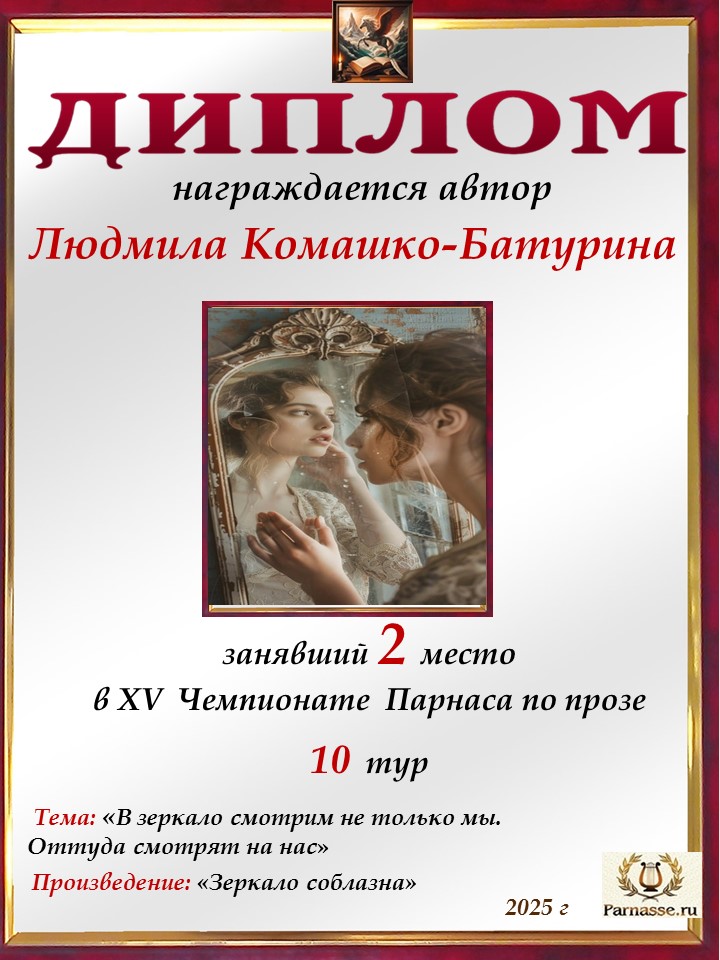 ![]() Медаль за 2 место в 4 туре XV Чемпионата Парнаса по прозе