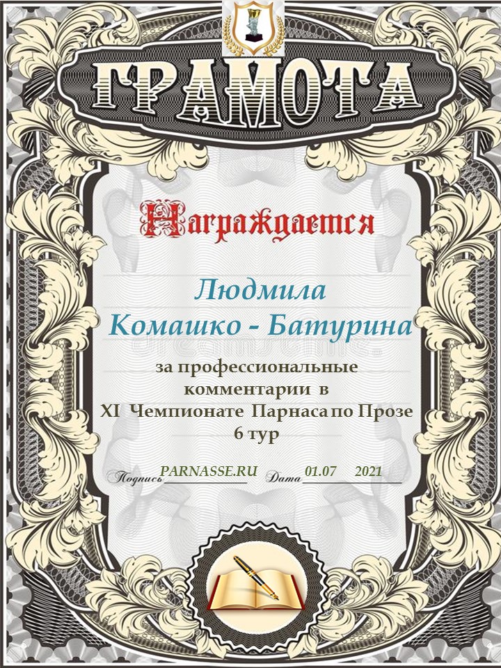 ![]() Медаль комментатора в 6 туре XV Чемпионата Парнаса по прозе
