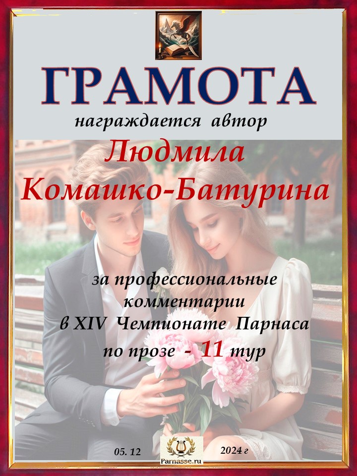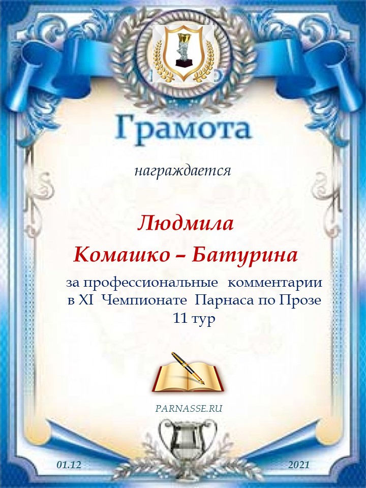 ![]() Медаль комментатора в 11 туре XV Чемпионата Парнаса по прозе