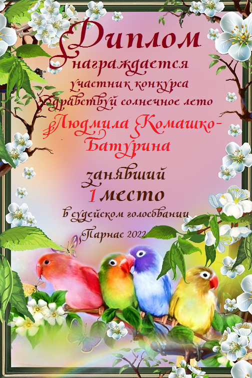 Первое место в судейском голосовании по итогам конкурса: «Пусть все птицы о счастье поют»