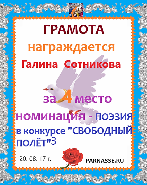 Грамота за 5 место в 136 конкурсе АКРОСТИХА (Альтернатива)! ПОЗДРАВЛЯЮ!