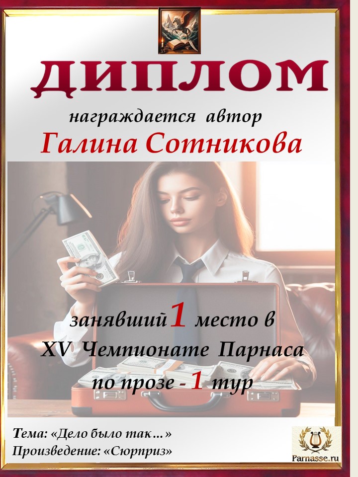 Поздравляю с занятым 1 местом в 4 туре XIII Чемпионата Парнаса по прозе!