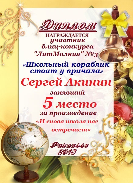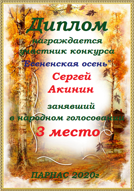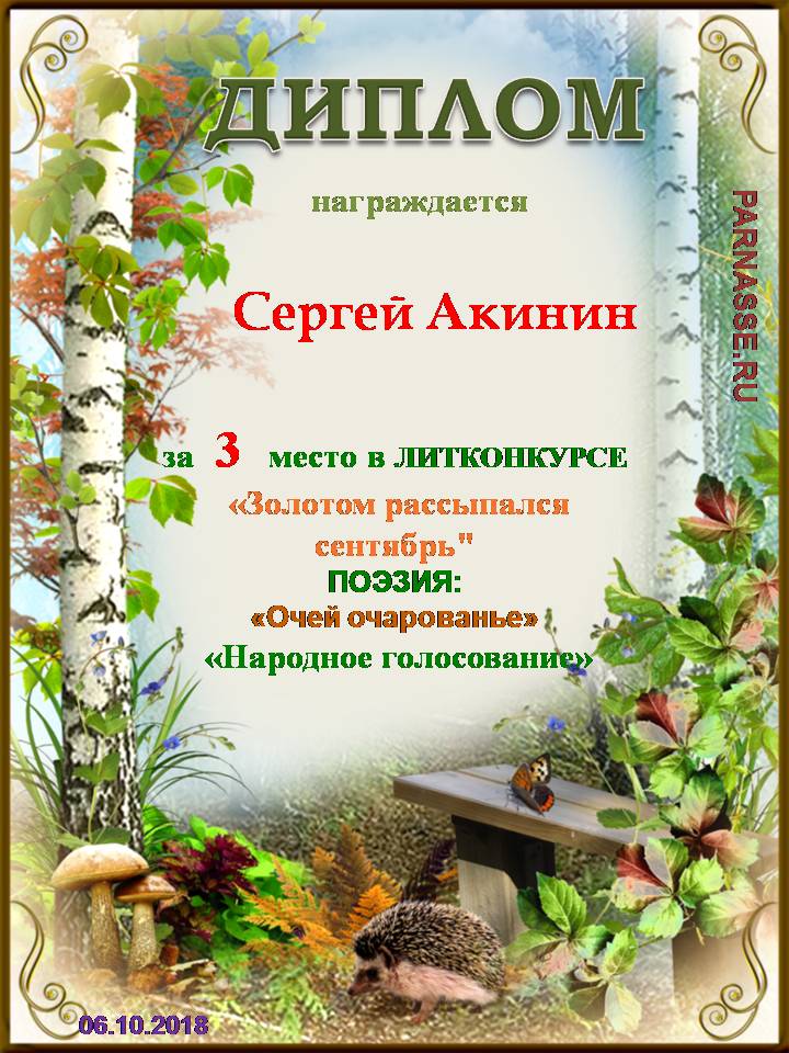 Поздравляем с занятым 3 местом в ЛИТКОНКУРСе «Золотом рассыпался сентябрь.,,», номинация – Поэзия (народное голосование)!