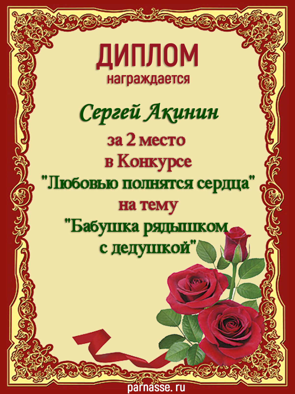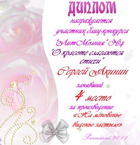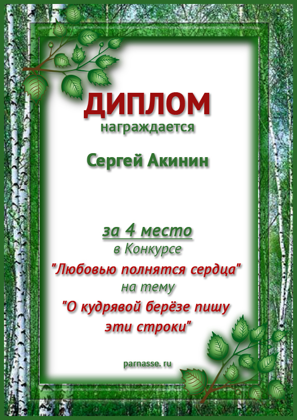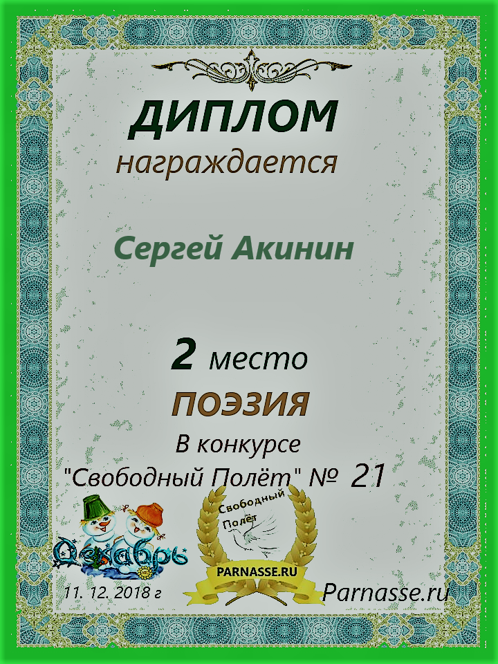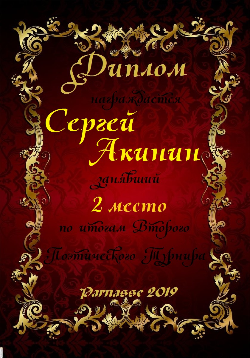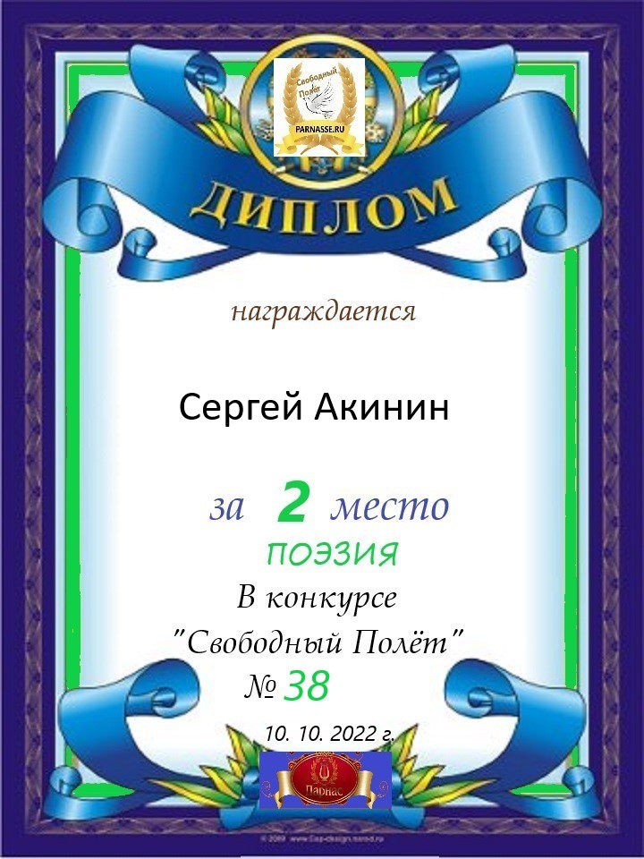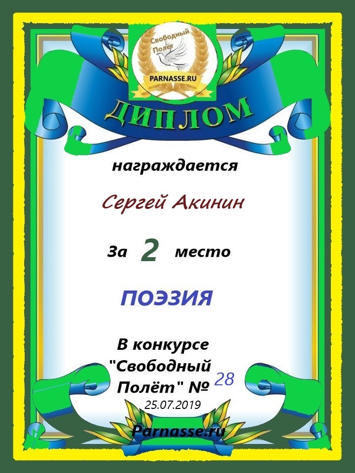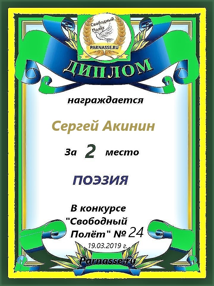 Диплом за 2 место в 138 конкурсе АКРОСТИХА (Альтернатива)! ПОЗДРАВЛЯЮ!