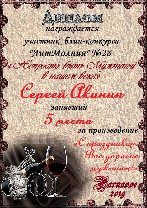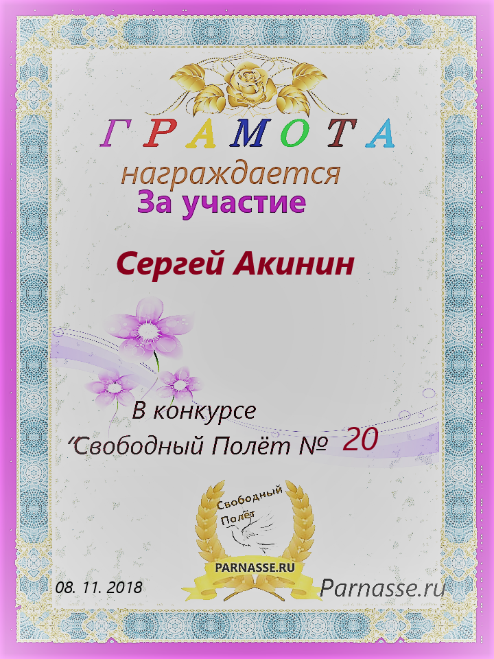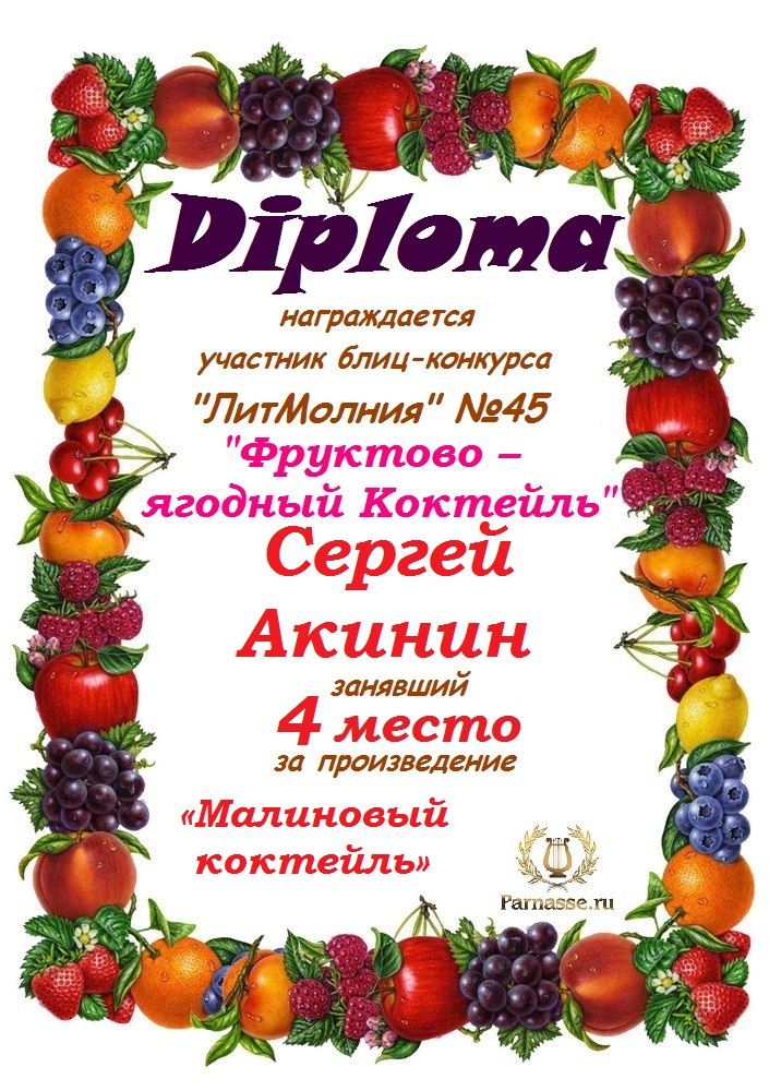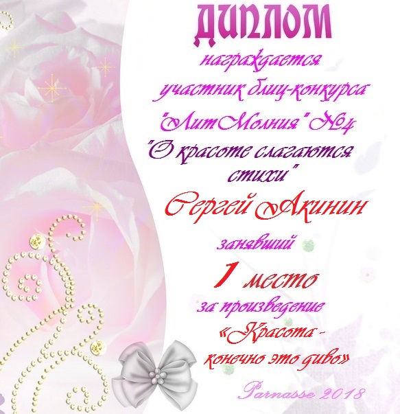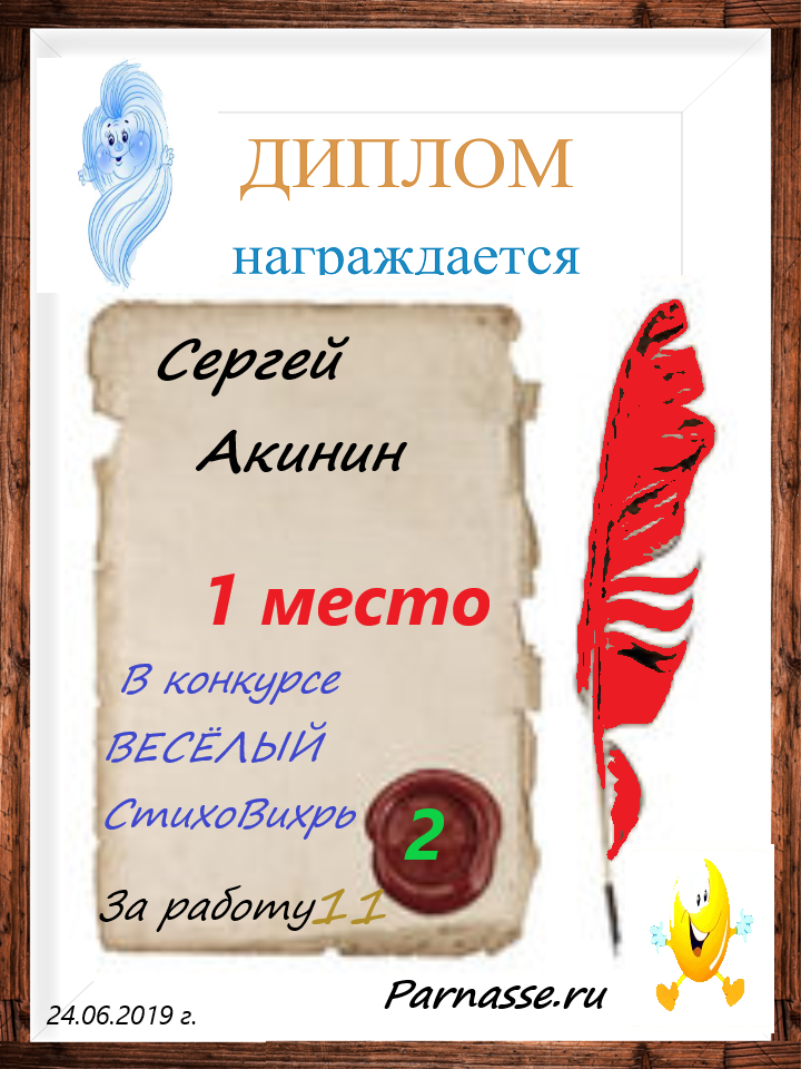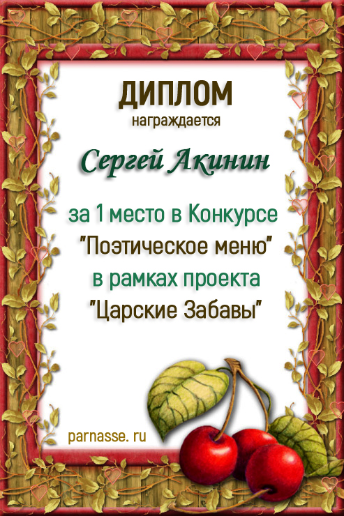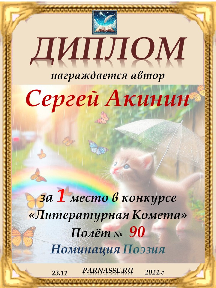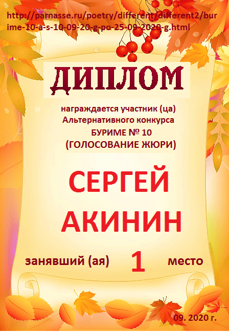Диплом за 1 место в 141 конкурсе АКРОСТИХА (Альтернатива)! ПОЗДРАВЛЯЮ!
