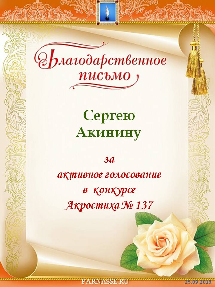 Благодарность за активное голосование в конкурсе Акростиха!СПАСИБО БОЛЬШОЕ!