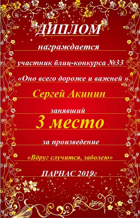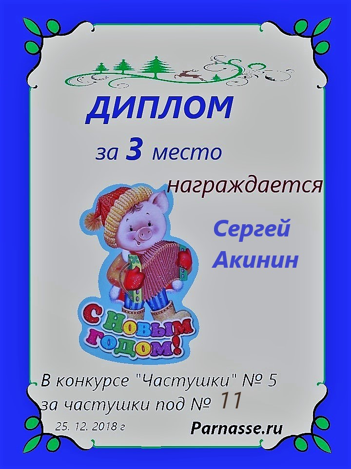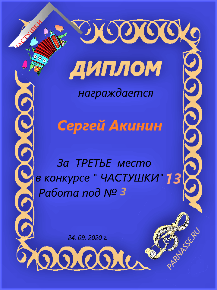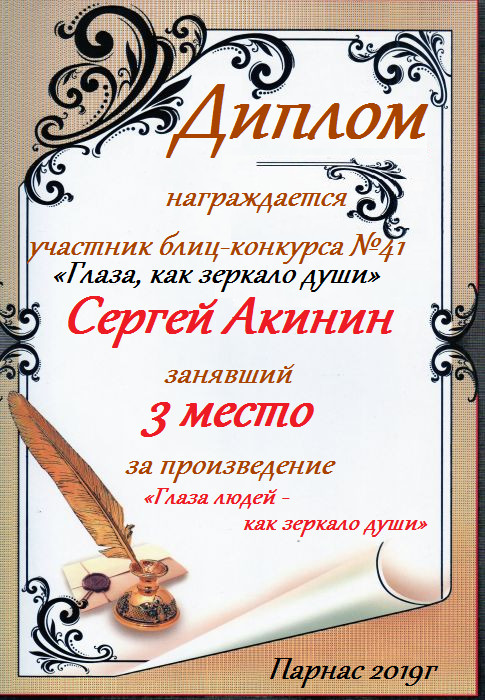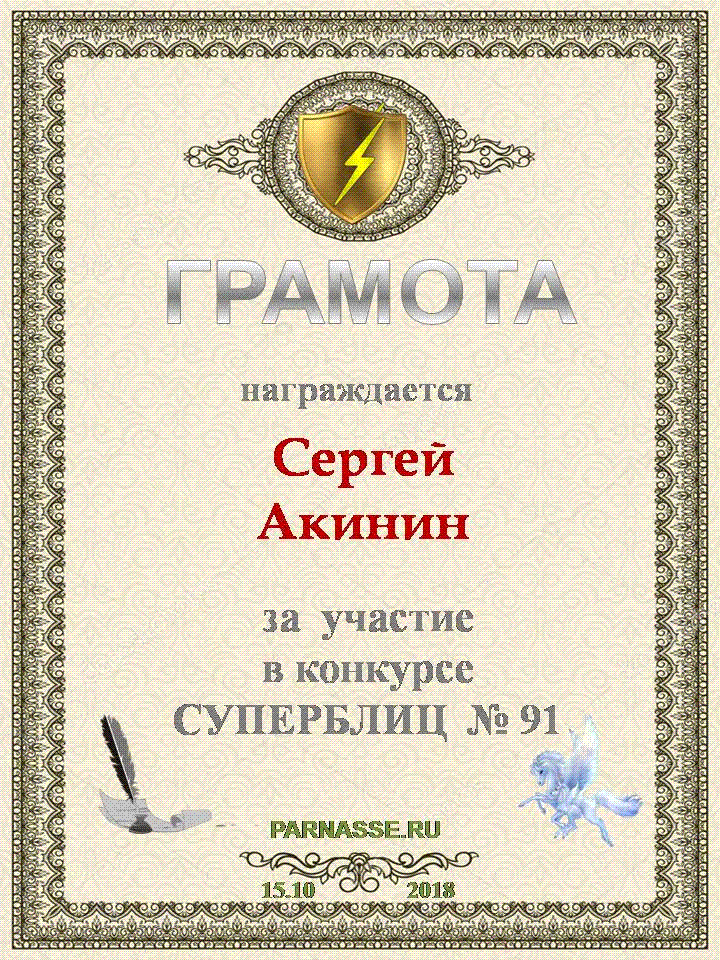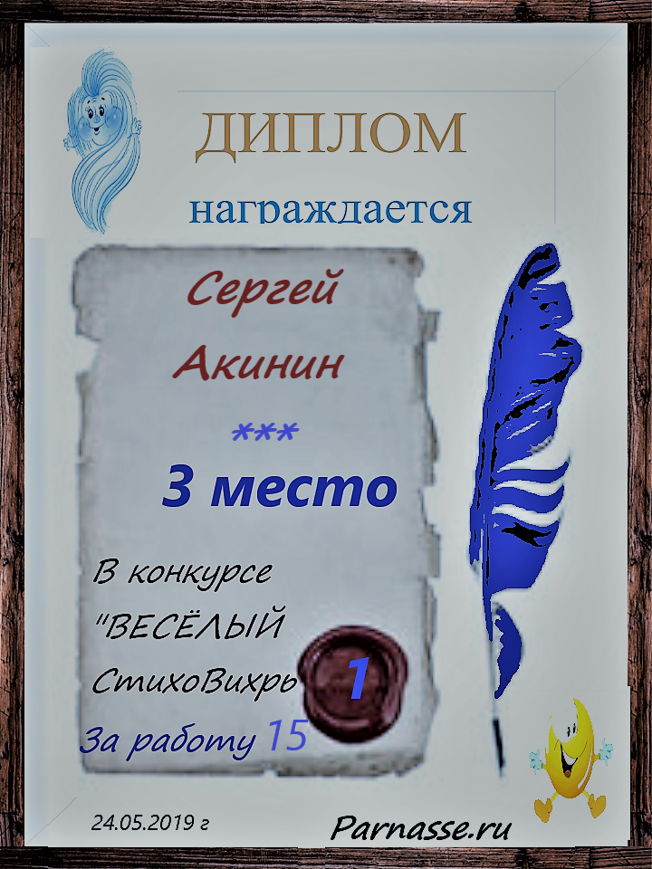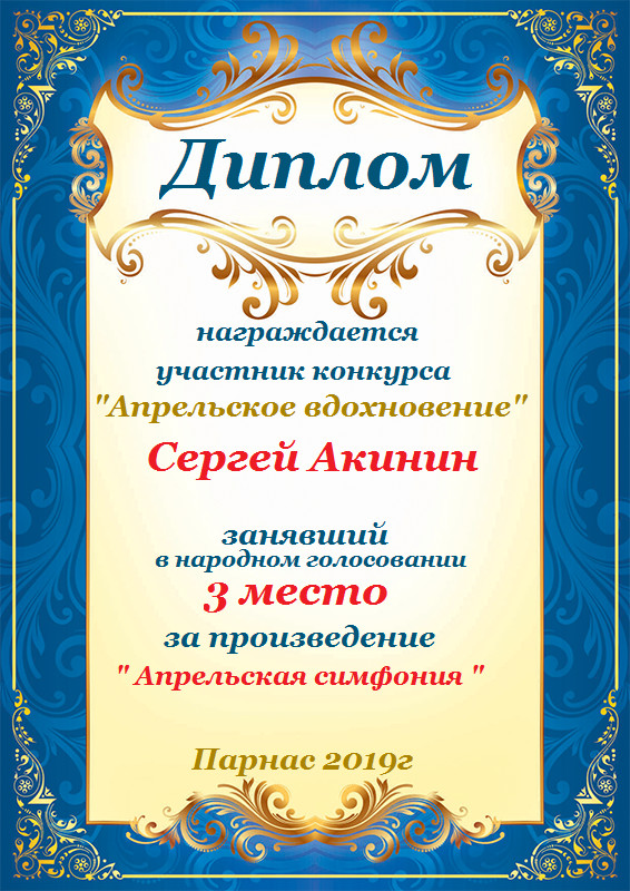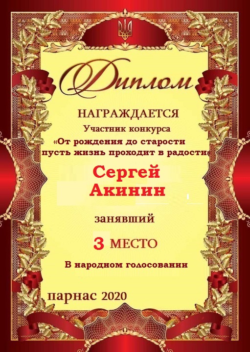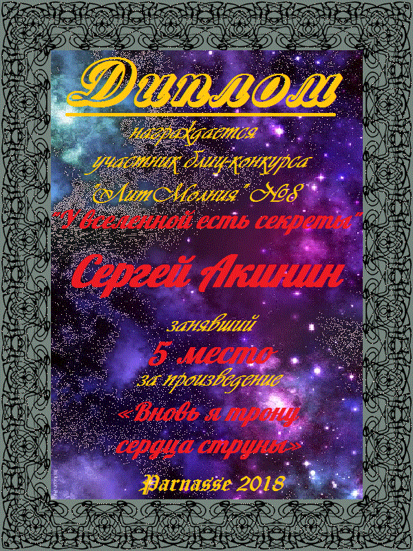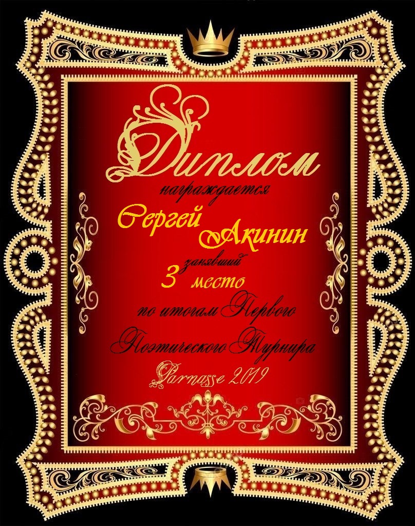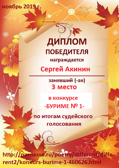 Диплом за 3 место в 143 конкурсе АКРОСТИХА (Альтернатива)! ПОЗДРАВЛЯЮ!