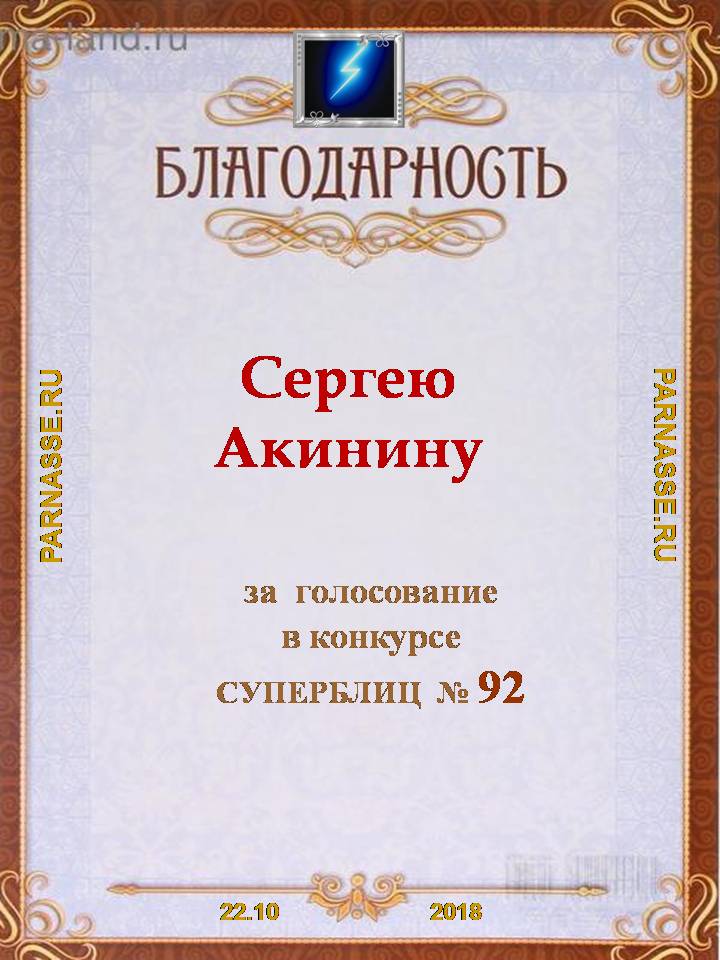 Благодарность за активное голосование в 92 конкурсе СУПЕРБЛИЦА!СПАСИБО БОЛЬШОЕ!