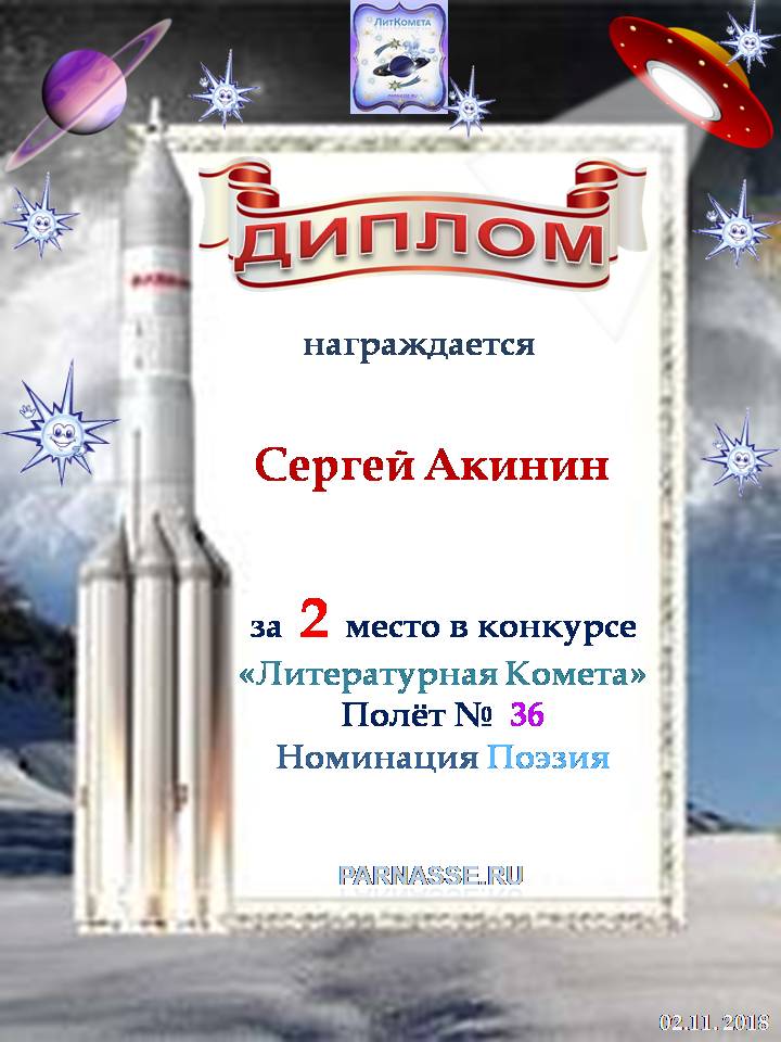 Поздравляю с занятым 2 местом в конкурсе "Литературная Комета - Полёт № 48" - Номинация Поэзия!