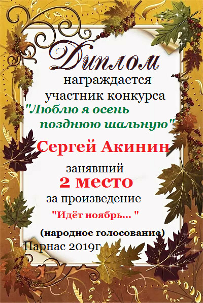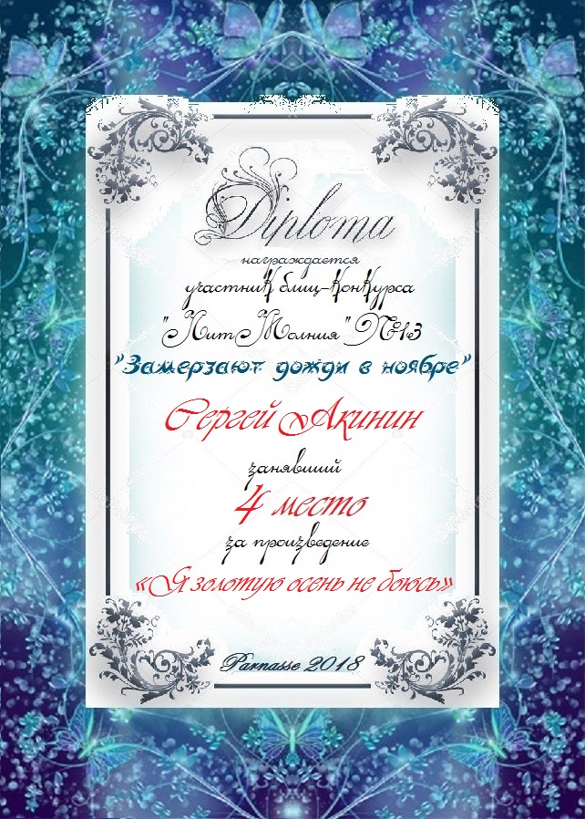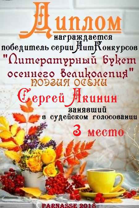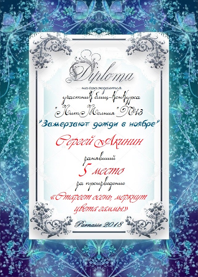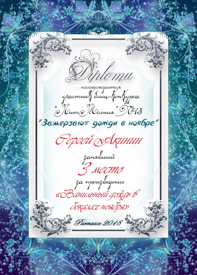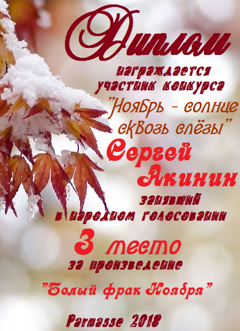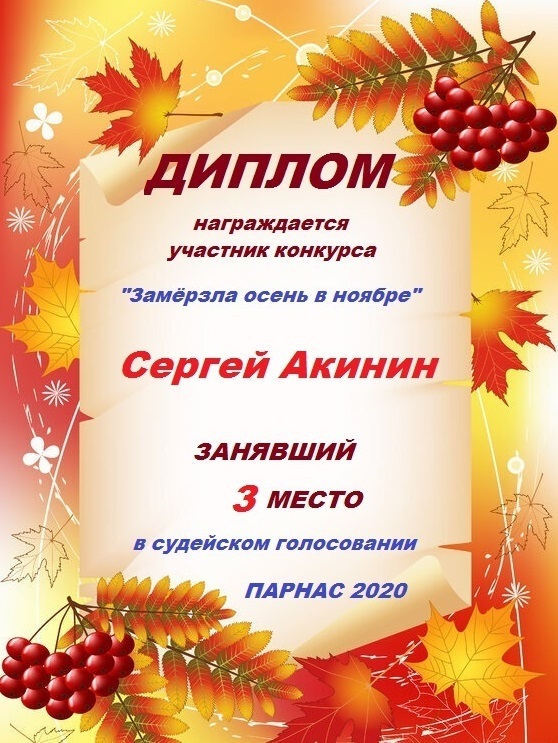 Третье место по итогам литературного конкурса «Замёрзла осень в ноябре», судейское голосование. Поздравляем с прекрасной победой!