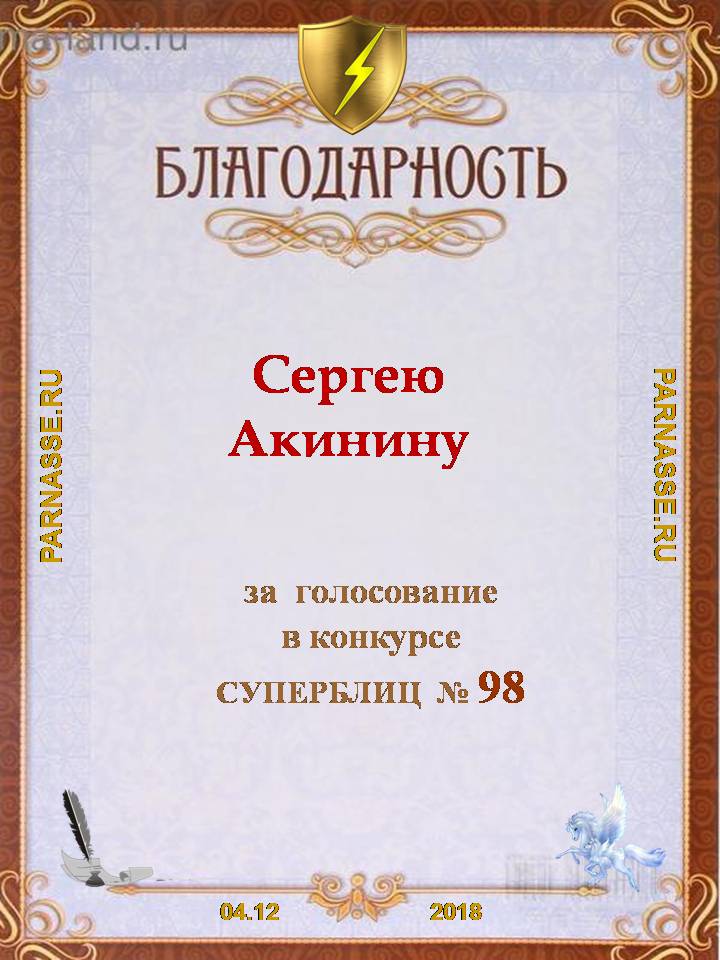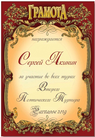 За участие в Четвёртом Поэтическом Турнире