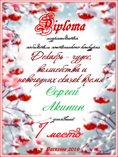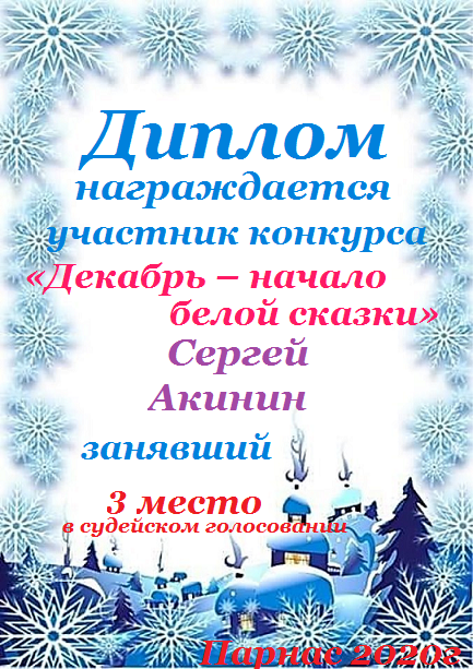 Третье место по итогам литературного конкурса «Самый красивый месяц зимы», народное голосование. Поздравляем с прекрасной победой!