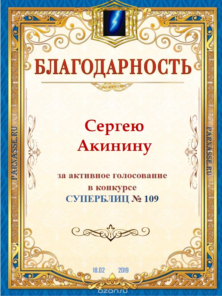 Благодарность за активное голосование в 109 конкурсе СУПЕРБЛИЦА!СПАСИБО БОЛЬШОЕ!