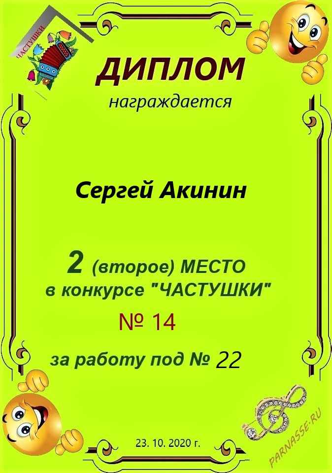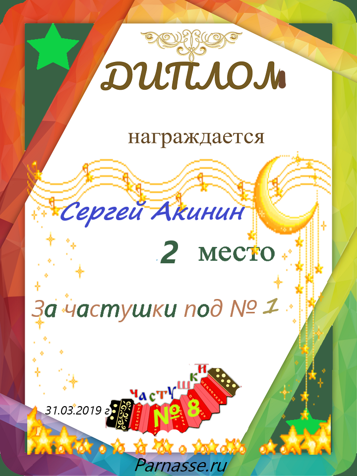 за участие в конкурсе "ЧАСТУШКИ" № 16