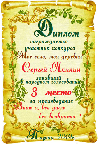 Третье место по итогам литературного конкурса «Отговорила роща золотая», народное голосование. Поздравляем с прекрасной победой!