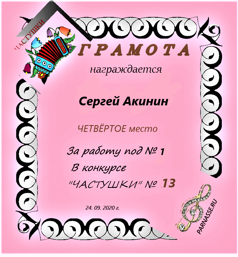 Грамота за 4 место в 150 конкурсе АКРОСТИХА (Альтернатива)! ПОЗДРАВЛЯЮ!