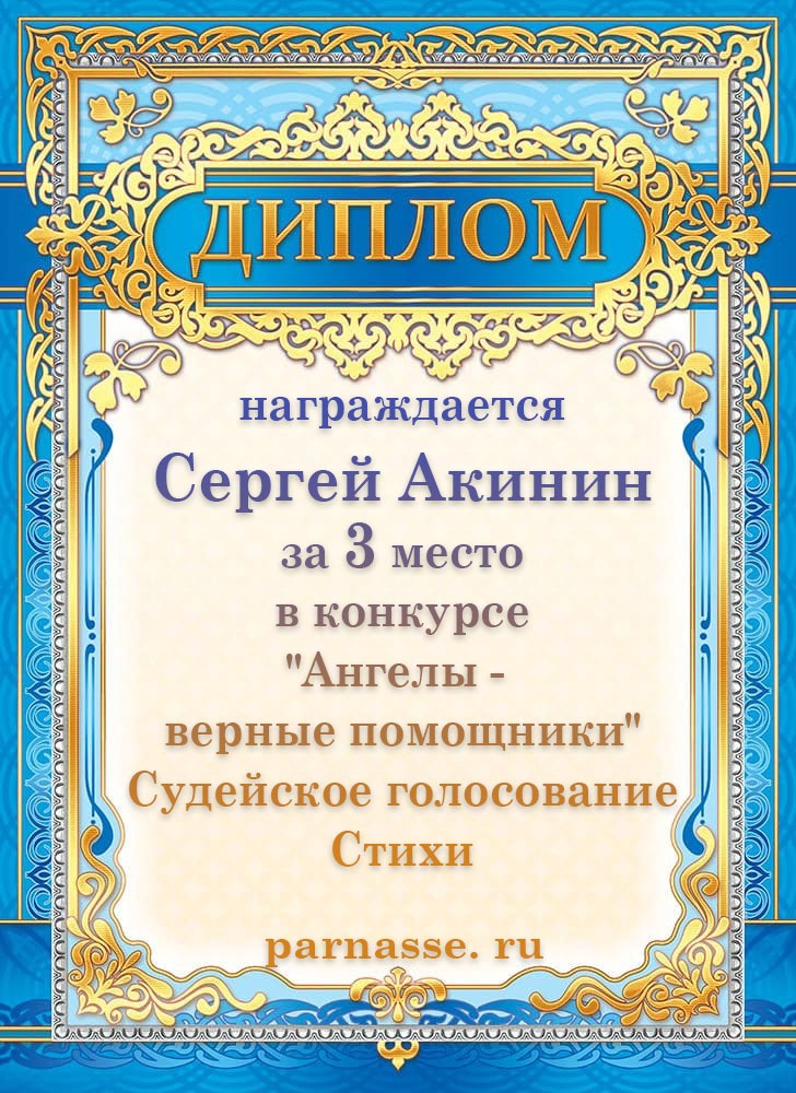 3 место в конкурсе "Ангелы -верные помощники". Судейское голосование. Стихи