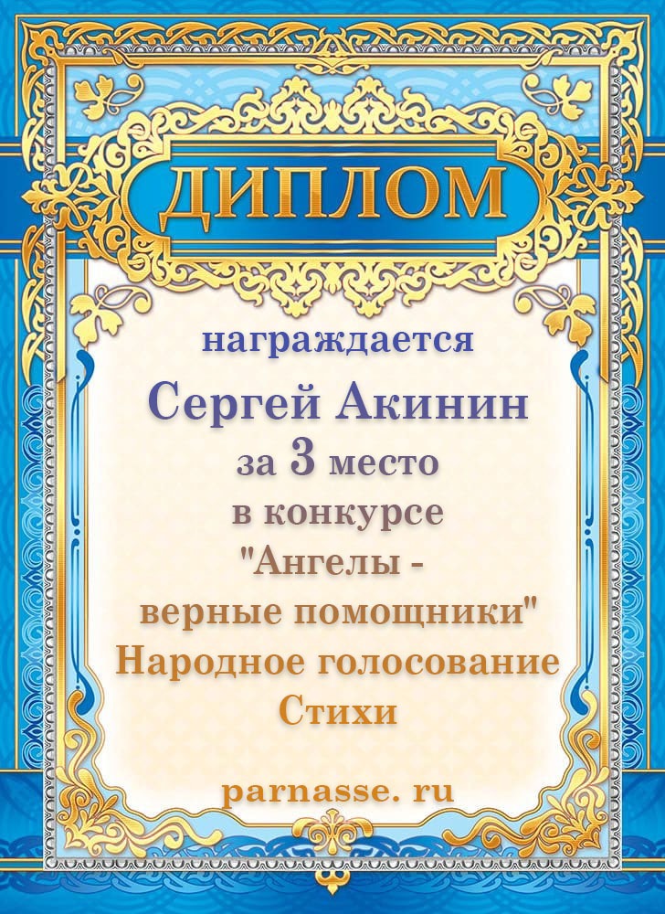 3 место в конкурсе "Ангелы -верные помощники". Народное голосование. Стихи