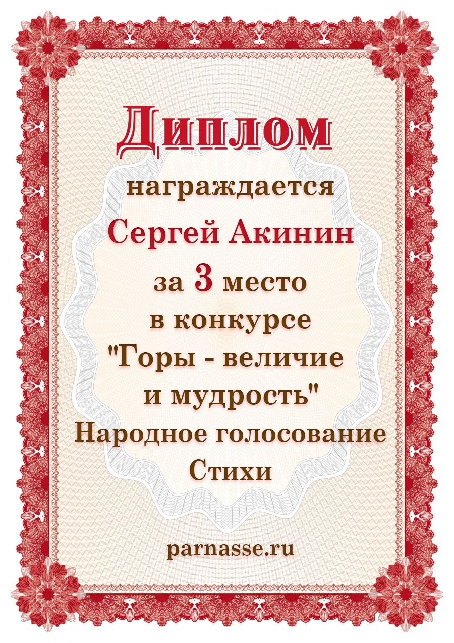За 3 место в в конкурсе "Горы - величие и мудрость". Народное голосование. Стихи