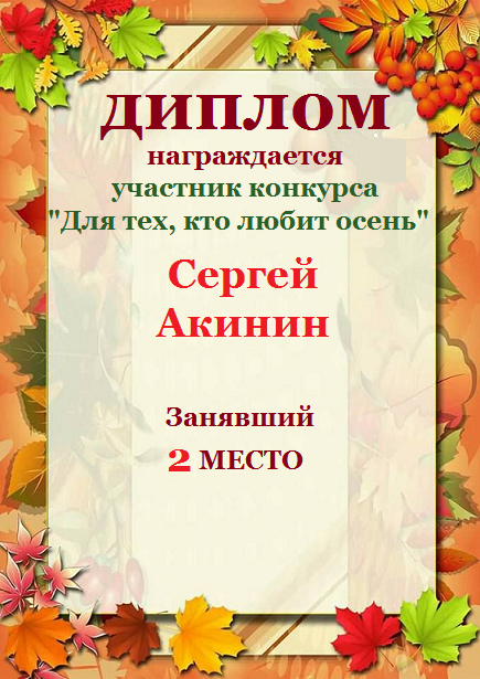 Второе место по итогам литературного конкурса – триады: «Для тех, кто любит осень». Поздравляем с прекрасной победой!