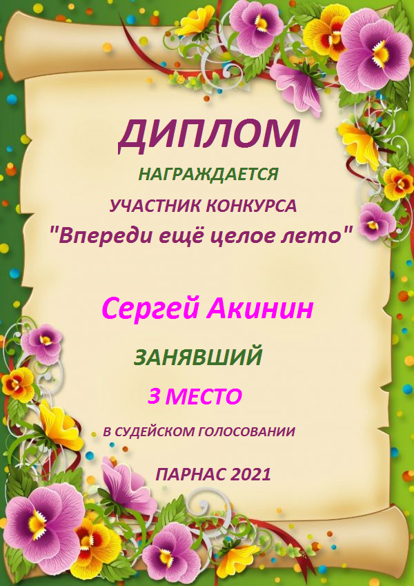 Третье место в судейском голосовании по итогам конкурса "Впереди ещё целое лето"