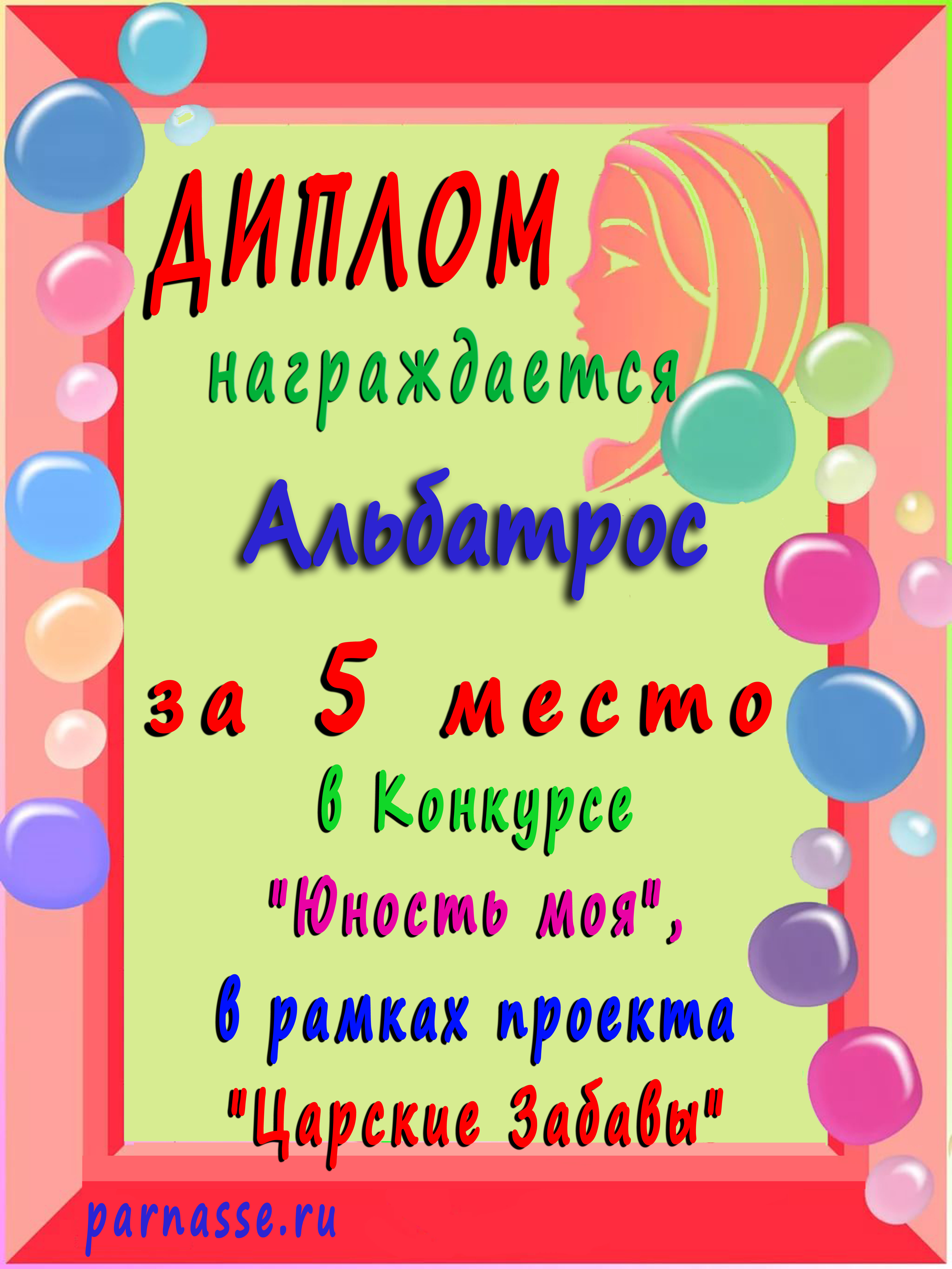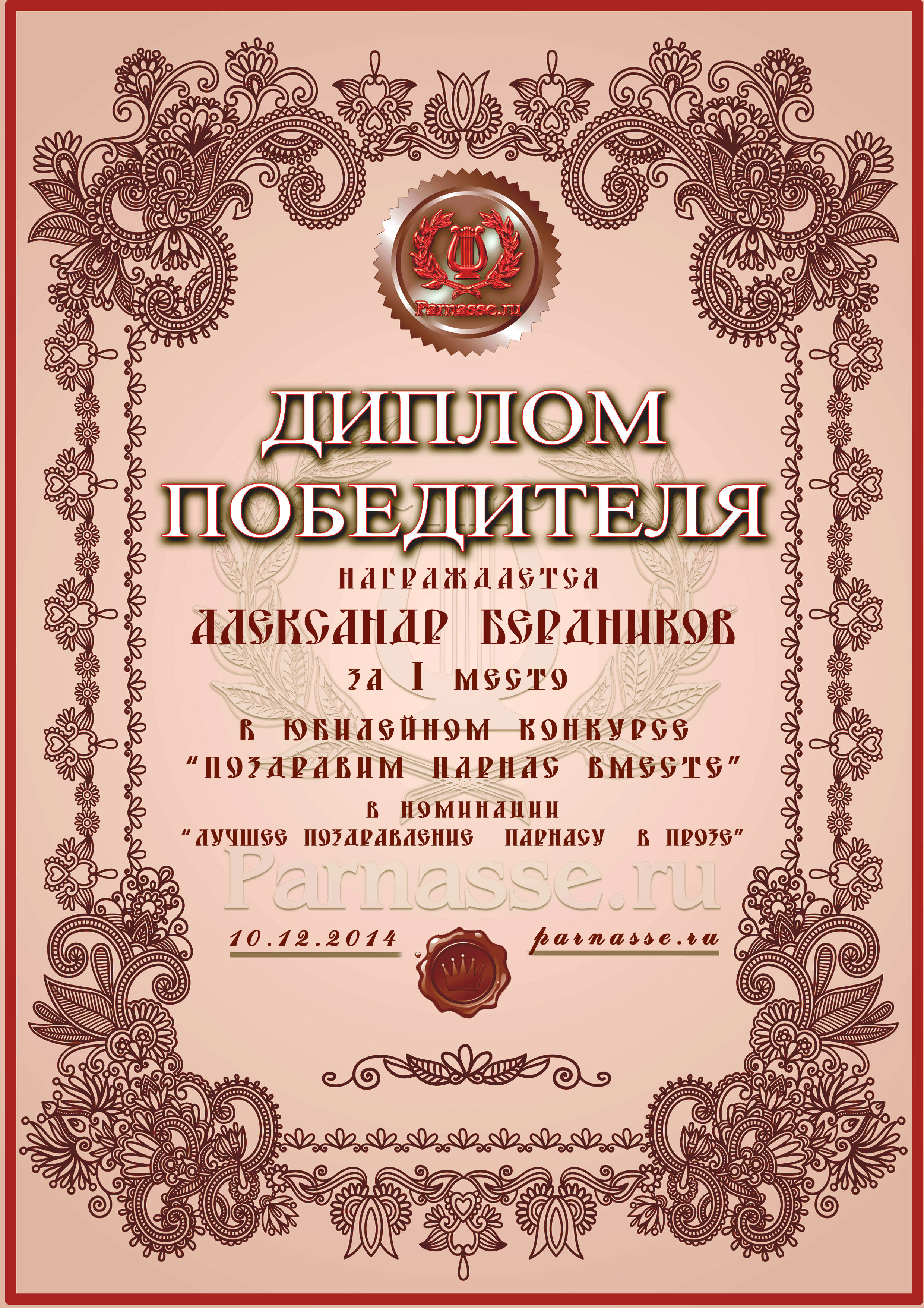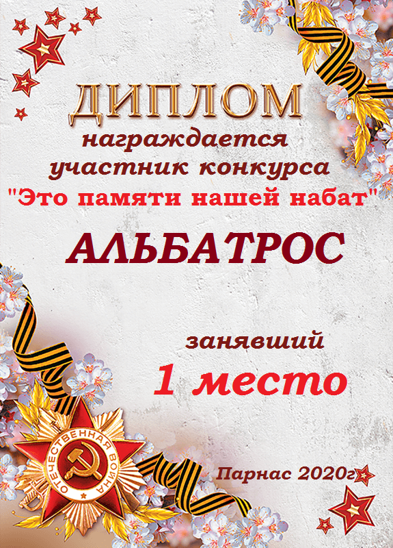 Диплом Победителя за 1 место в праздничном конкурсе "Поздравим Парнас с трёхлетием вместе!"