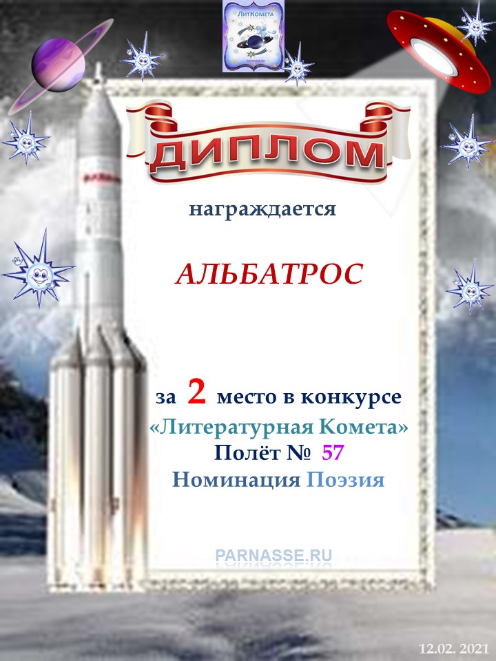Поздравляю с занятым 2 местом в конкурсе "Литературная Комета - Полет № 58" - Номинация Поэзия!