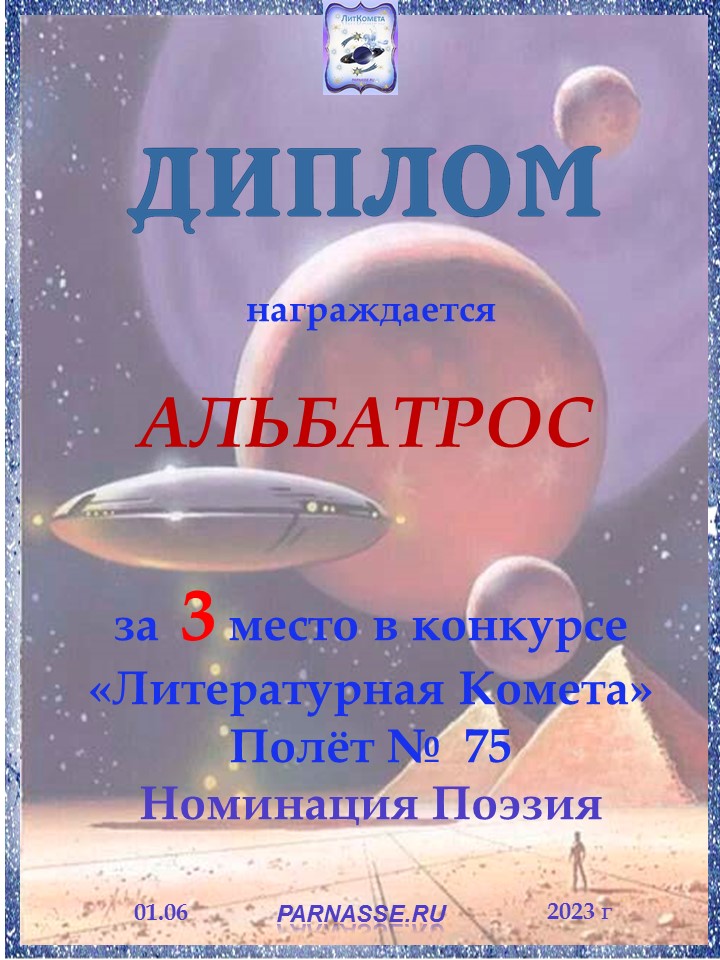 Поздравляю с занятым 3 местом в конкурсе "ЛитКомета - Полёт № 75" - Номинация Поэзия!