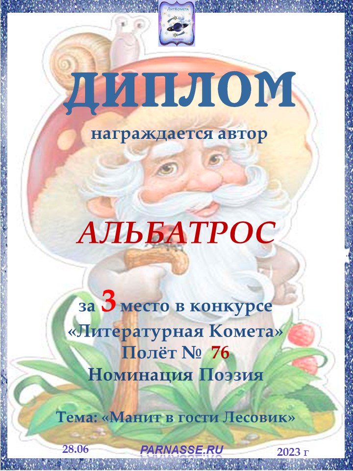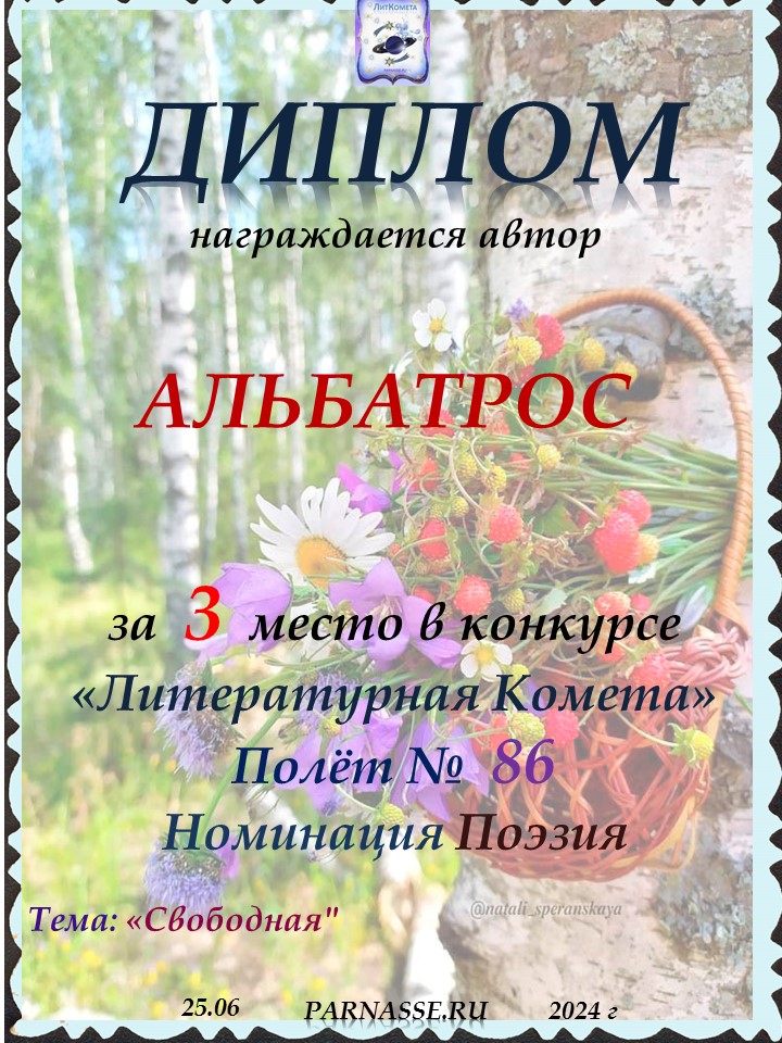 Поздравляю с занятым 3 местом в конкурсе "ЛитКомета-Полёт № 72" - Номинация Поэзия!