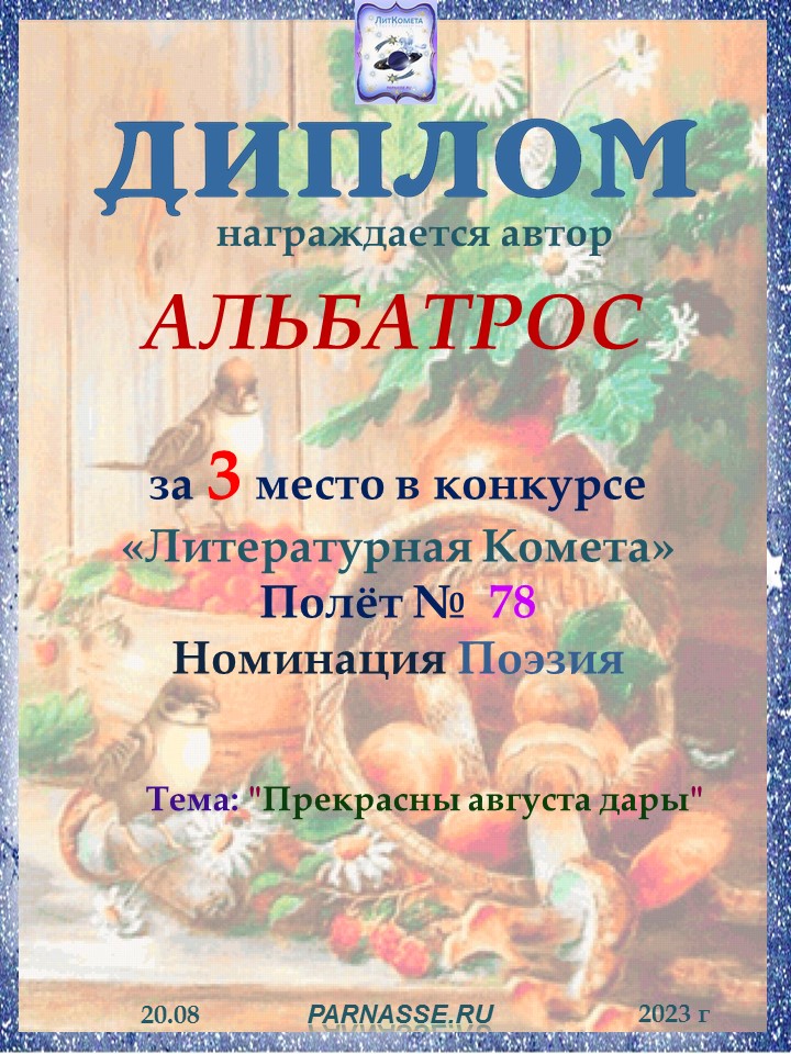 Поздравляю с занятым 3 местом в конкурсе "ЛитКомета - Полёт № 78" - Номинация Поэзия!