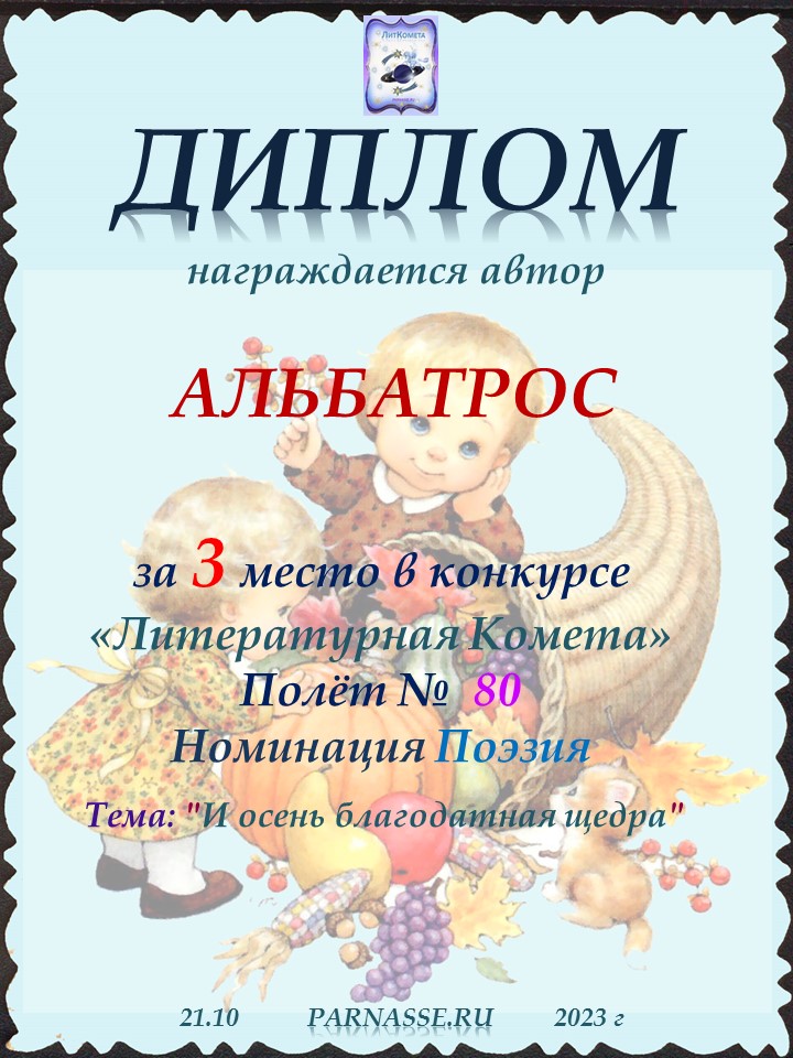 Поздравляю с занятым 3 местом в конкурсе "ЛитКомета - Полёт № 80" - Номинация Поэзия!