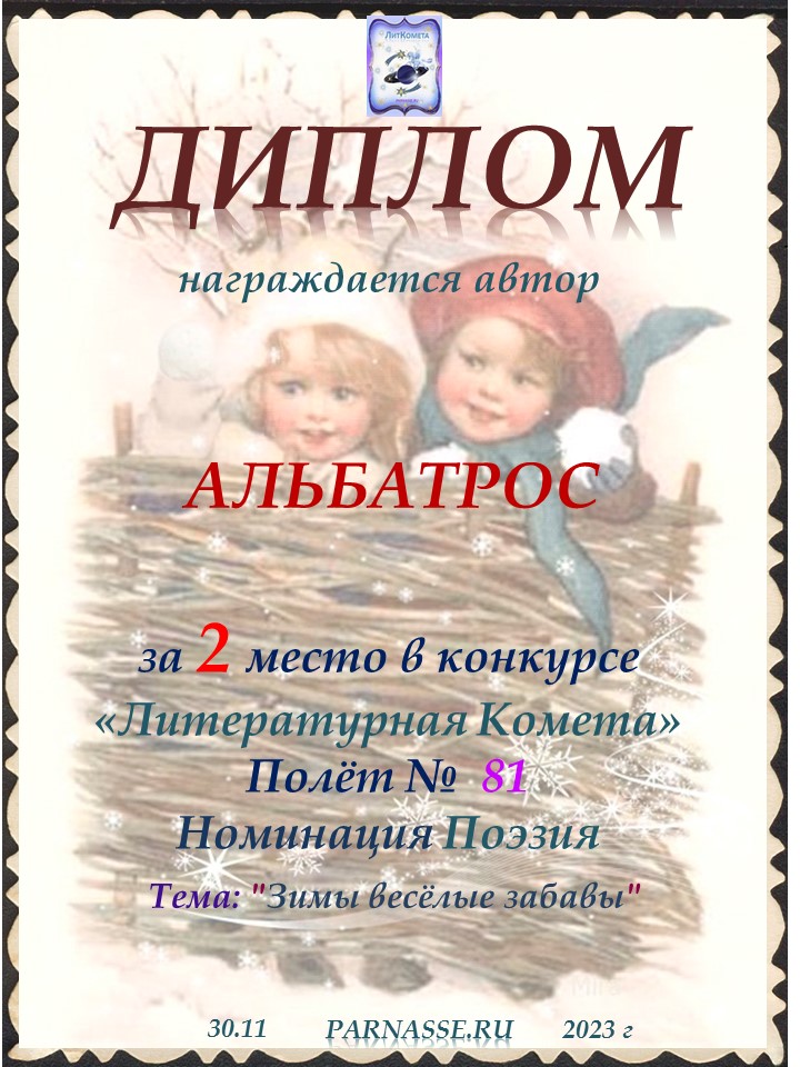 Поздравляю с занятым 2 местом в конкурсе "ЛитКомета - Полёт № 81" - Номинация Поэзия!