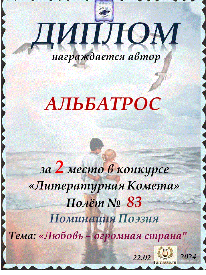 Поздравляю с занятым 2 местом в конкурсе "ЛитКомета - Полёт № 83" - Номинация Поэзия!