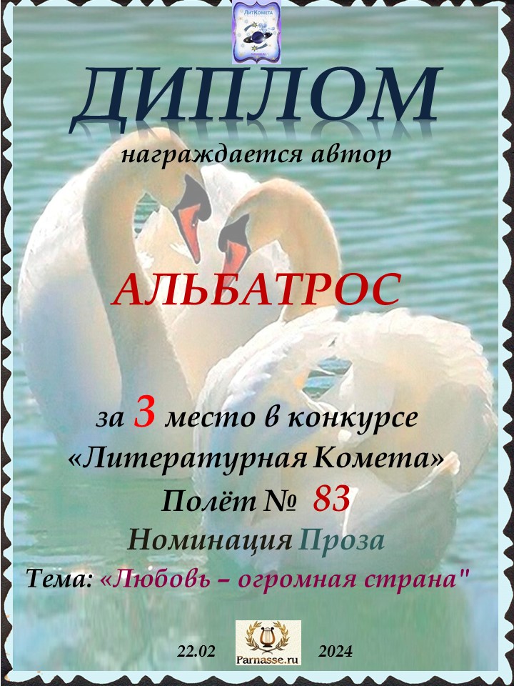 Поздравляю с занятым 3 местом в конкурсе "ЛитКомета - Полёт № 83" - Номинация Проза!