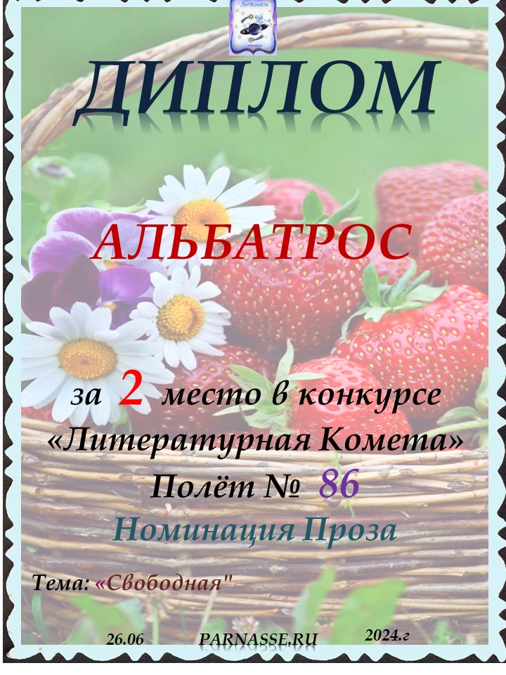оздравляю с занятым 2 местом в конкурсе "ЛитКомета - Полёт № 93" - Номинация Проза!