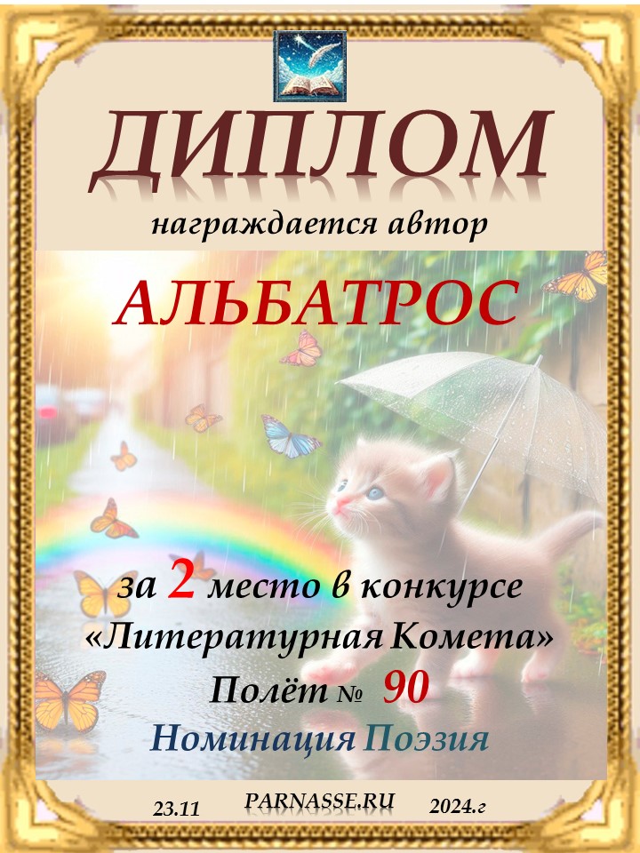 Поздравляю с занятым 2 местом в конкурсе "ЛитКомета - Полёт № 90" - Номинация Поэзия!