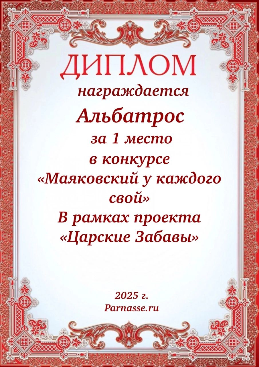 1 место в конкурсе "Маяковский у каждого свой". Поздравляем!