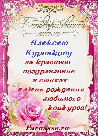 Номинация "Лучшее стихотворное поздравление Парнасу". Уважаемый Алексей!