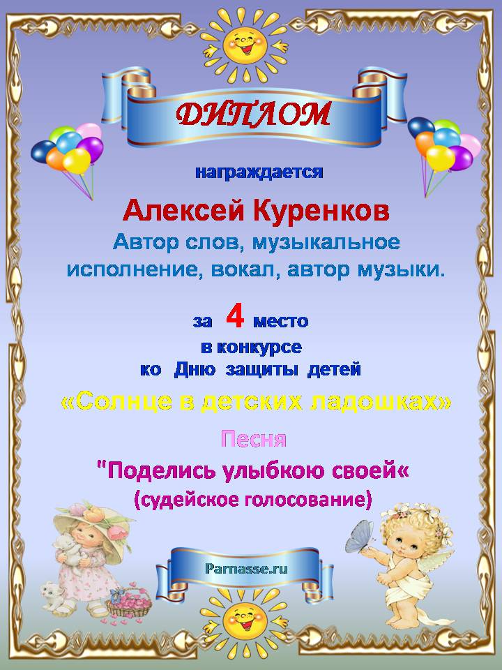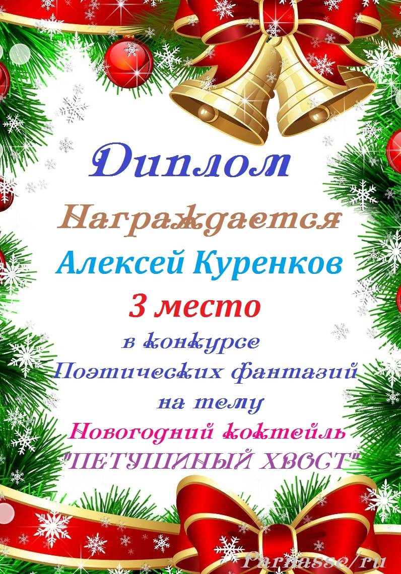 Диплом за 1 место в праздничном конкурсе "Поздравим Парнас с трёхлетием вместе!"