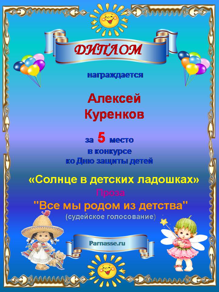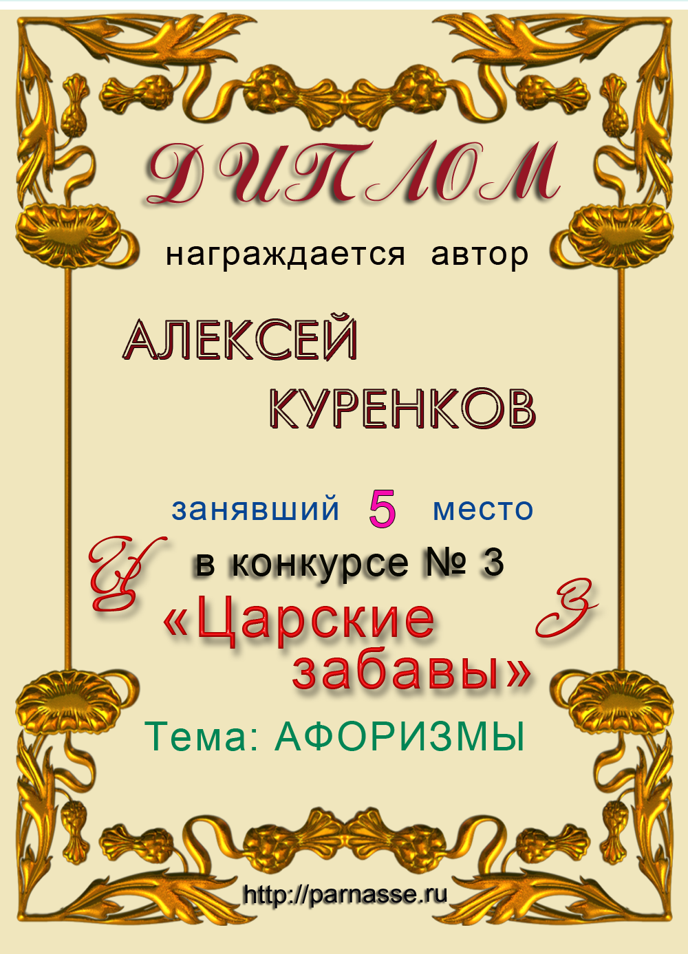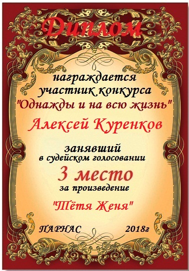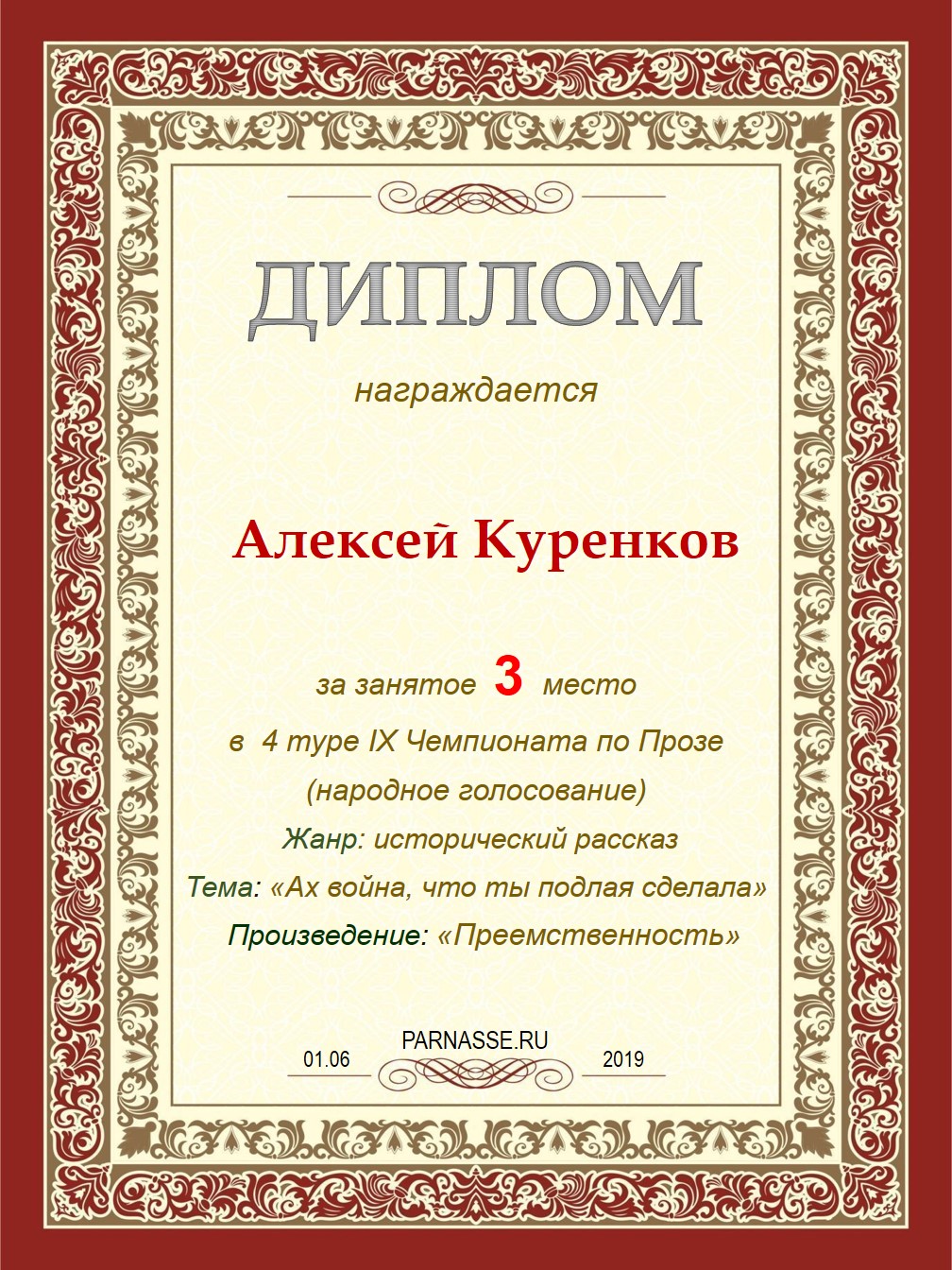 За 3 место в 4 туре IX Чемпионата Парнаса по Прозе (народное голосование)