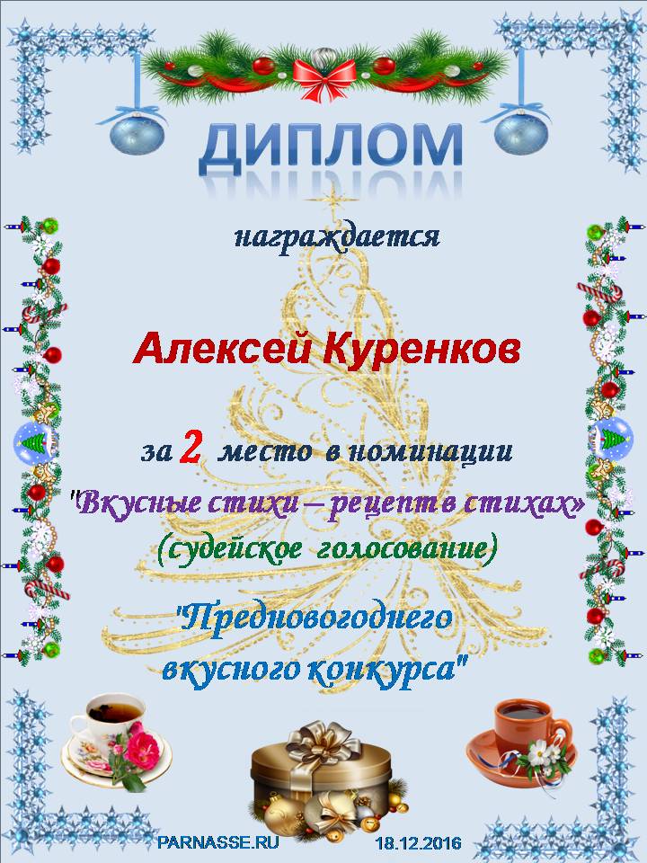 Второе место в судейском голосовании по итогам конкурса «Декабрь торопит Новый Год»
