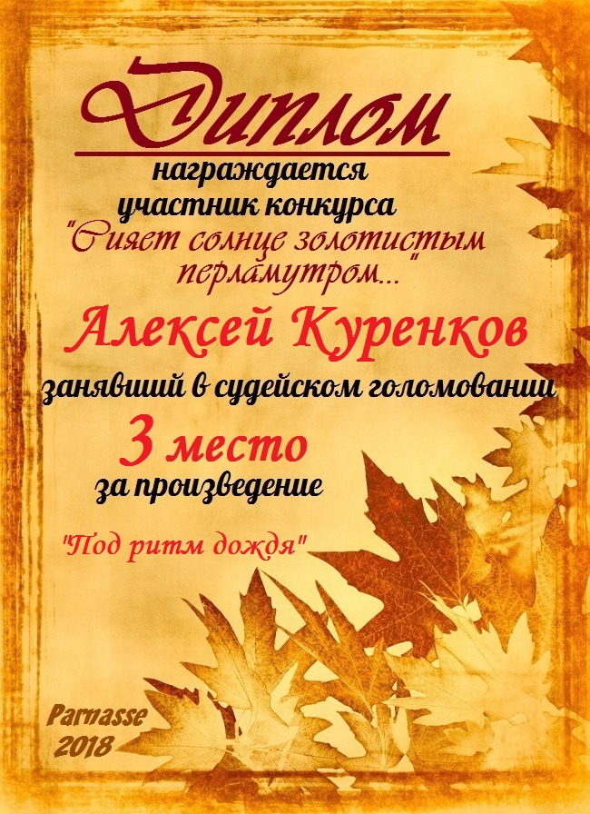 за 3 место в конкурсе"Свободный Полёт" № 31 ПОЭЗИЯ